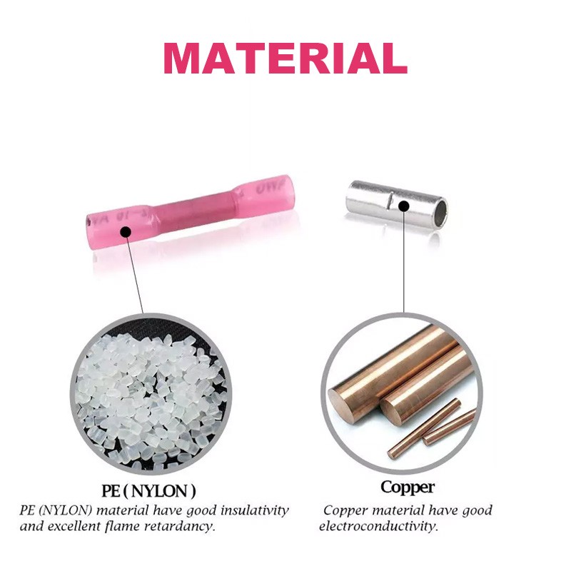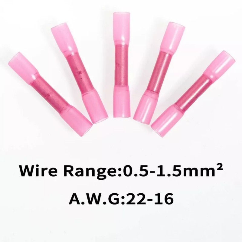 100Pcs Heat Shrink Waterproof Wire Connectors Butt Seal Terminals Red 22-16 AWG