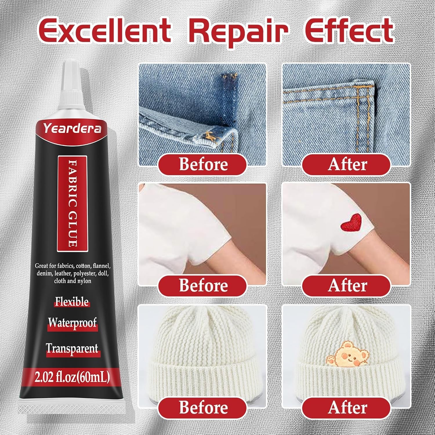 Fabric Glue, Permanent, Clear, Washable Adhesive for Clothing, Patches,...