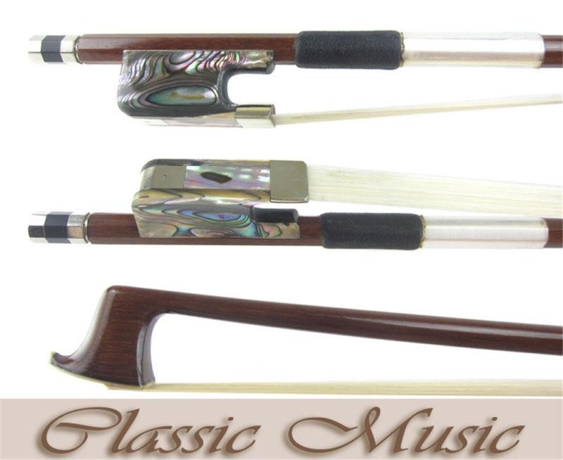 как выглядит SILVER PERNAMBUCO Viola Bow with Abalone Shell Frog 4/4 , Free Shipping фото