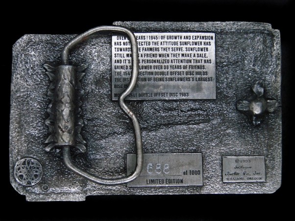 UD09135 NOS VINTAGE 1983 SUNFLOWER MODEL 1541 FARM EQUIPMENT BELT BUCKLE