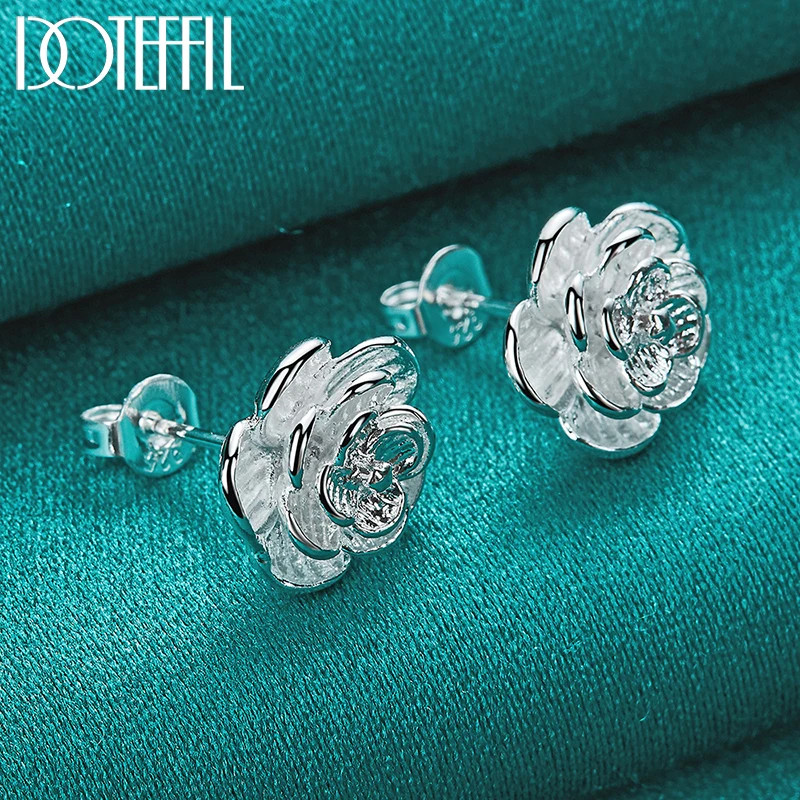 925 Sterling Silver Rose Flowers Stud Earring For Woman Fashion Wedding
