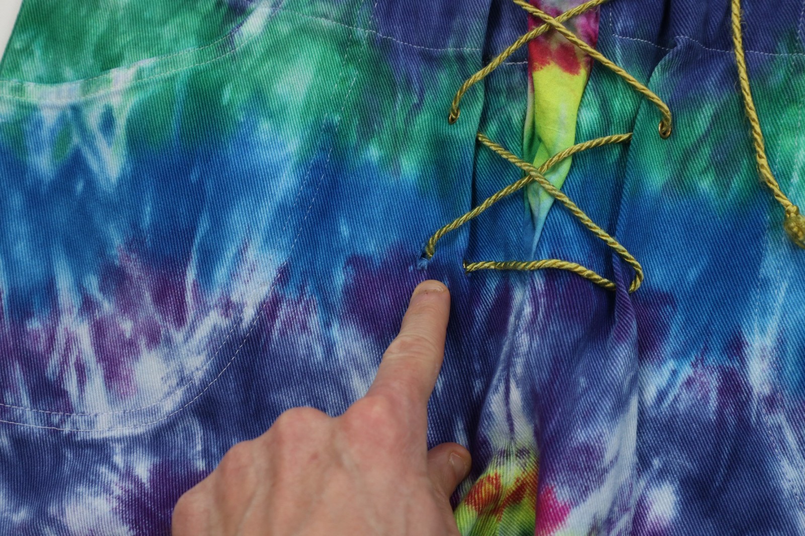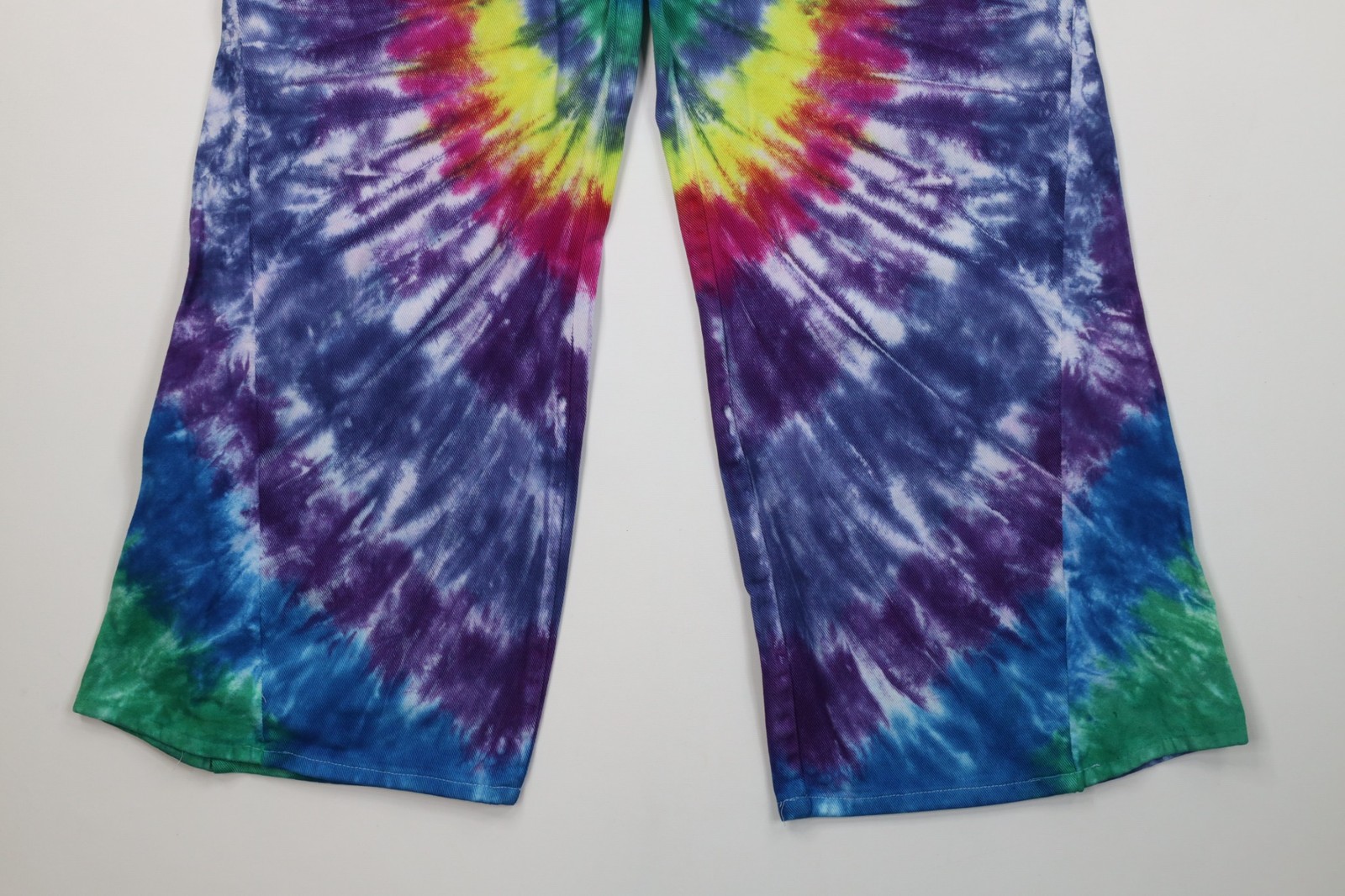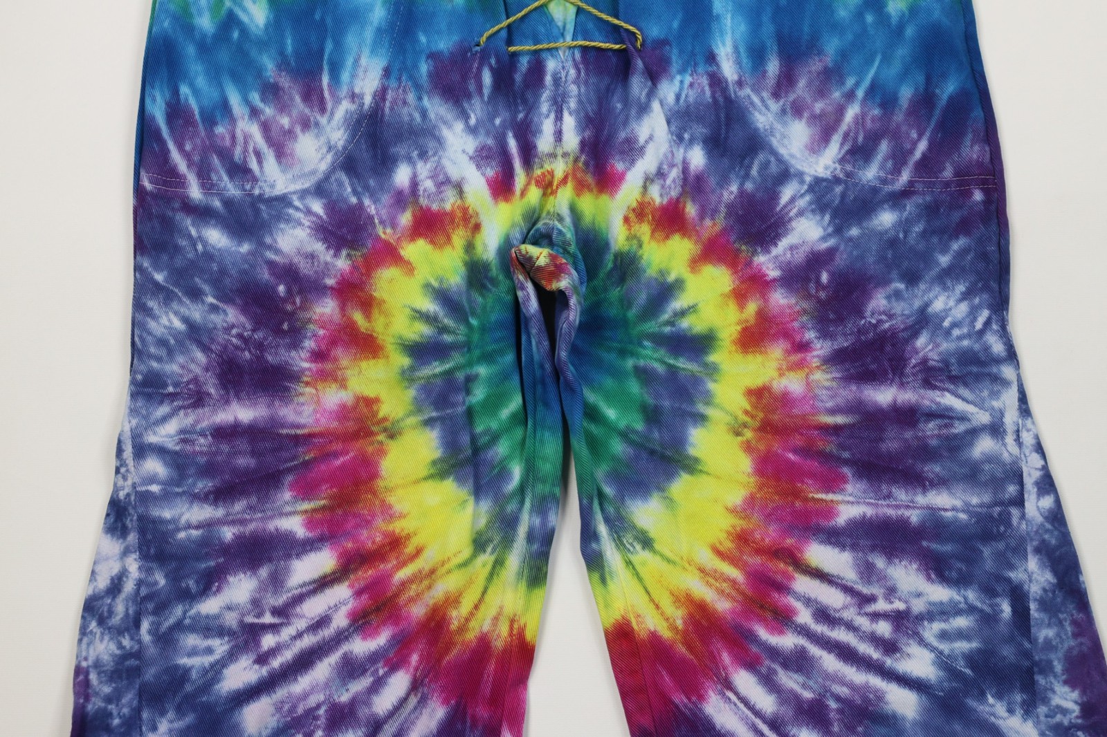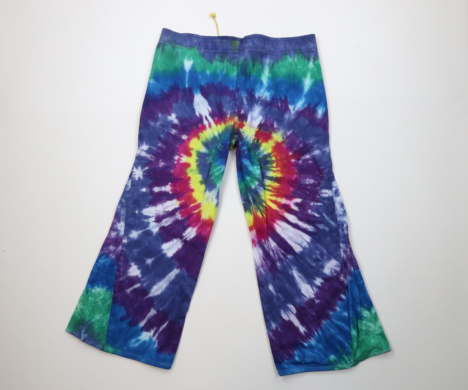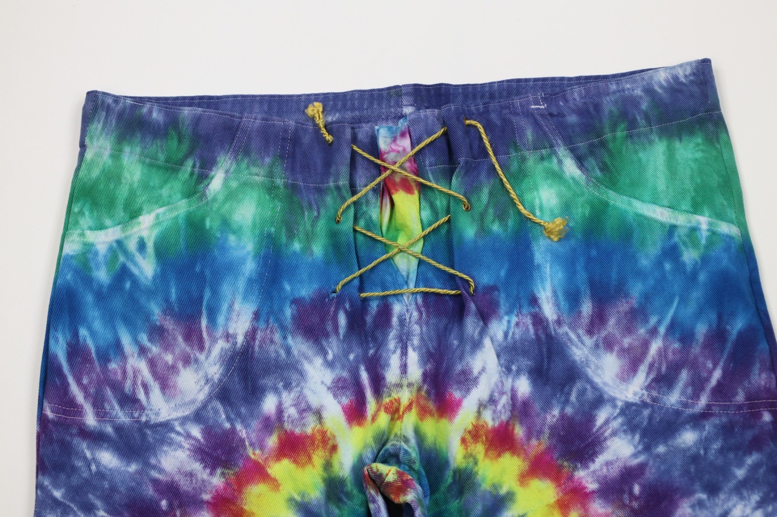 Vintage 90s Streetwear Womens 14 Rainbow Tie Dye Bell Bottoms Denim Jeans USA