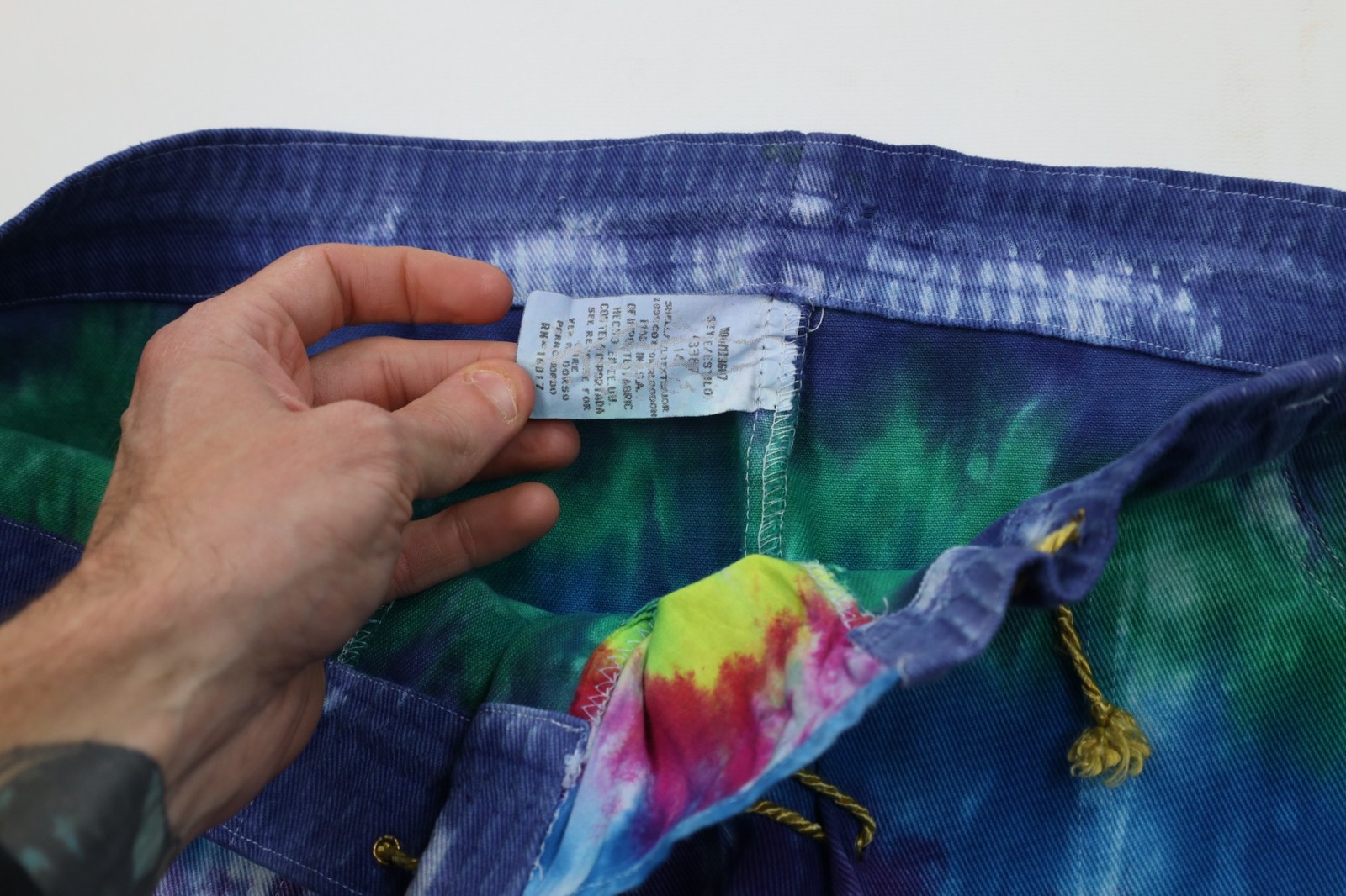 как выглядит Vintage 90s Streetwear Womens 14 Rainbow Tie Dye Bell Bottoms Denim Jeans USA фото