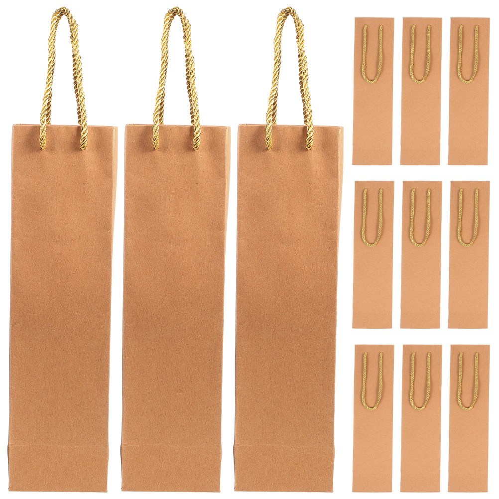12 Pcs Kraft Paper Wine Bottle Gift Bags With Handle Bags 9.5 x 9 x 35 cm