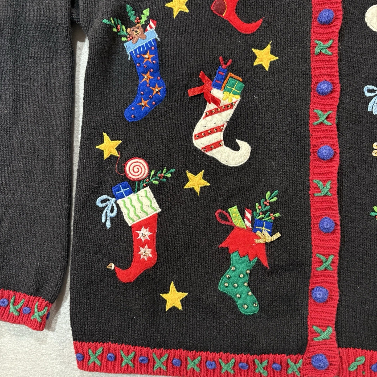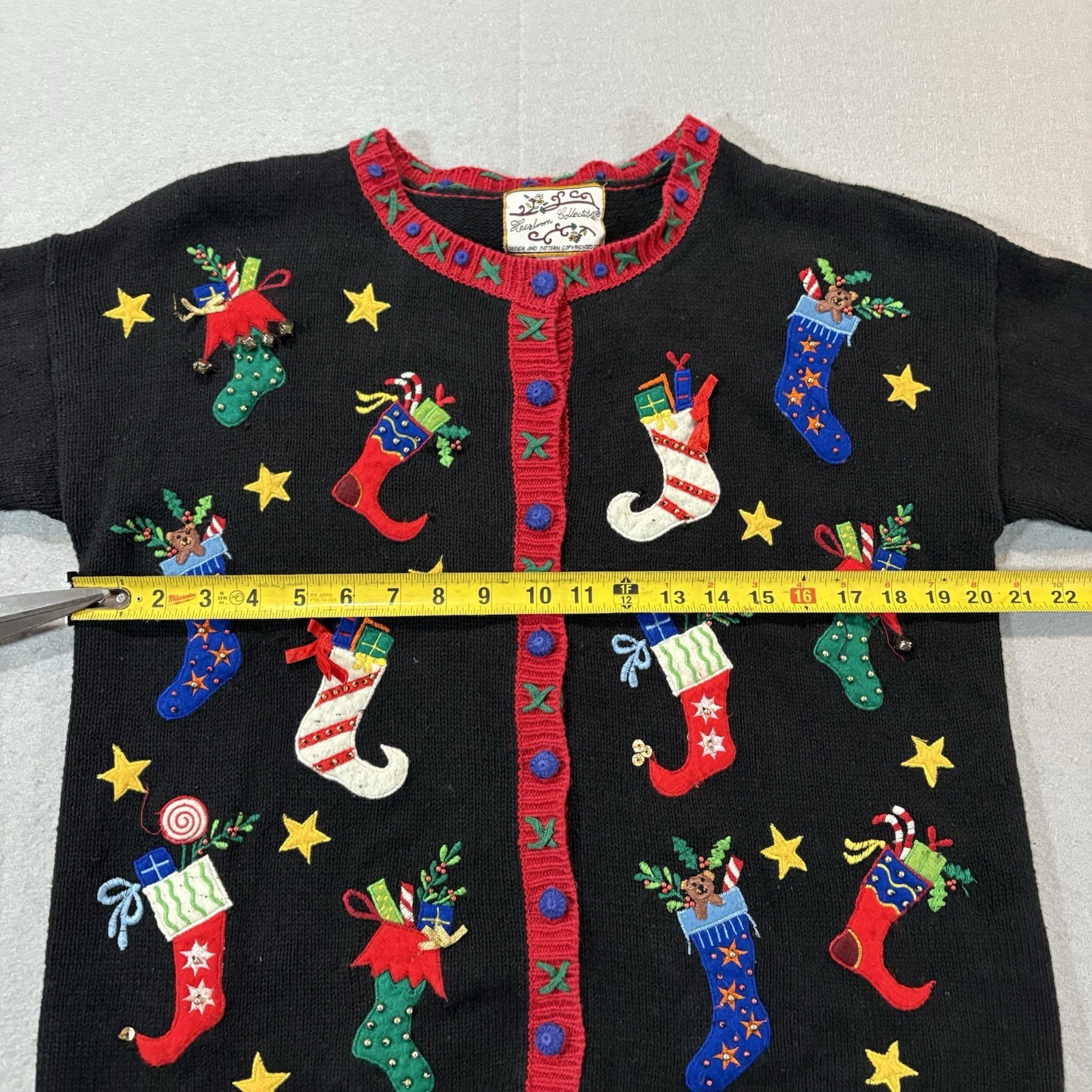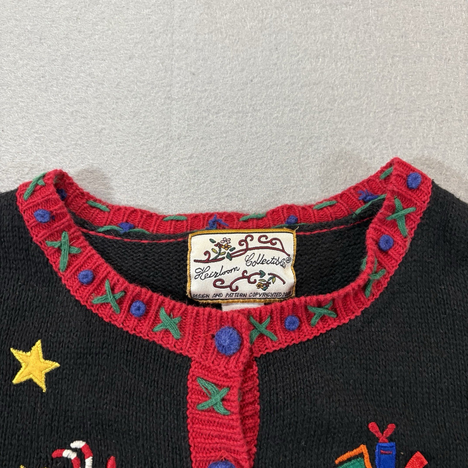 VTG 90s Heirloom Collectibles Sweater Small Cardigan Christmas Cottage Jingle