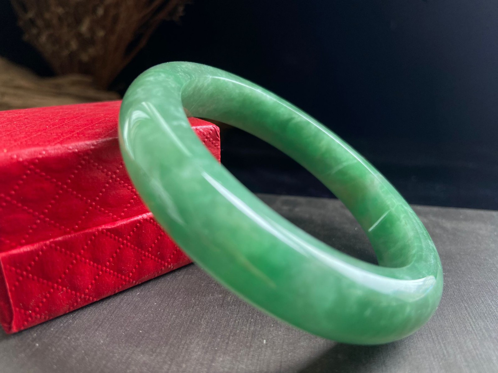 как выглядит Certified Natural Grade AAA Ice Green Burmese Jade jadeite bracelet 56MM1917 фото