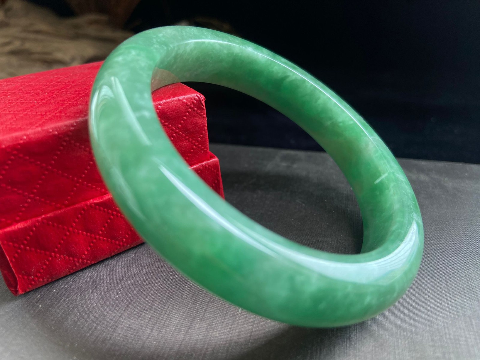 Certified Natural Grade AAA Ice Green Burmese Jade jadeite bracelet 56MM1917
