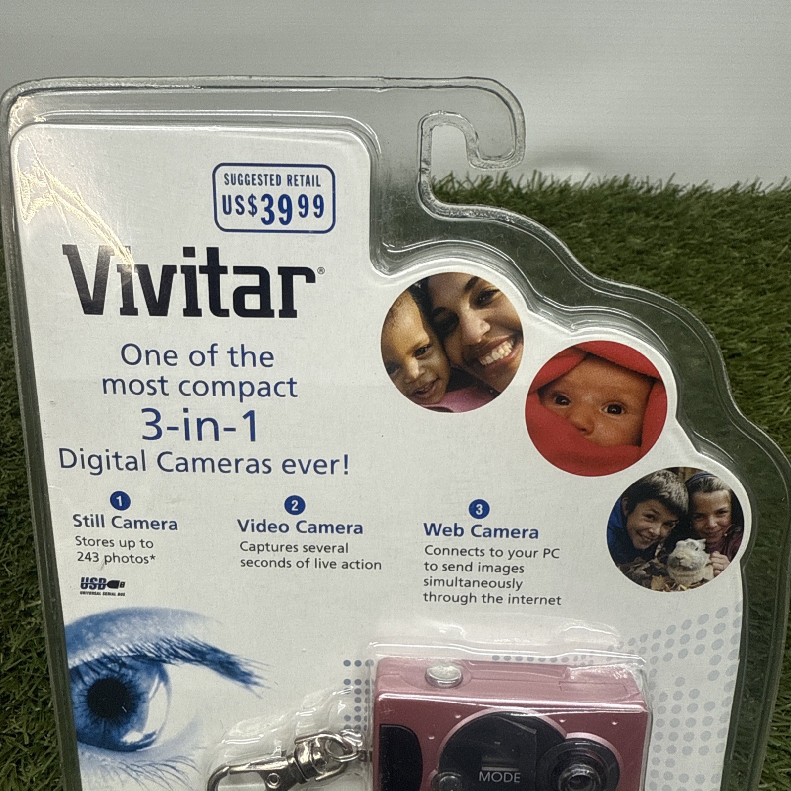 Pink Mini Digital Camera Keychain Vivitar 3-in-1 Miniature WEB Cam Capability