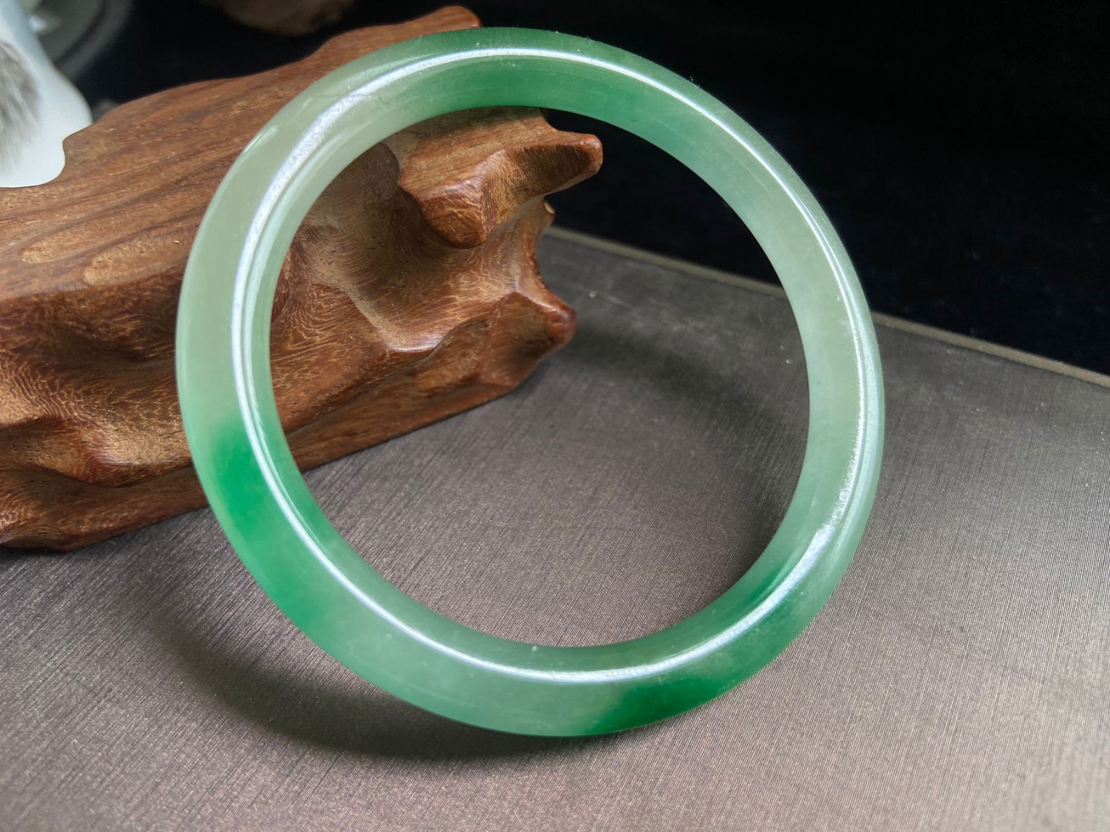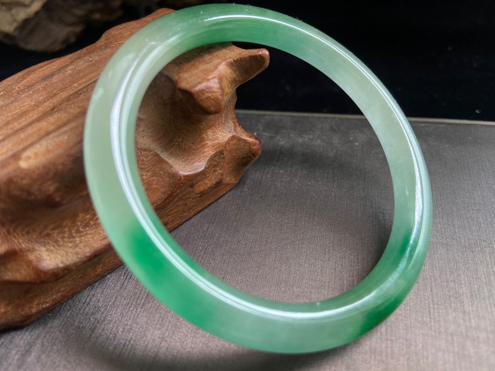 Certified Natural Grade AAA Ice Green Burmese Jade jadeite bracelet 54MM2490