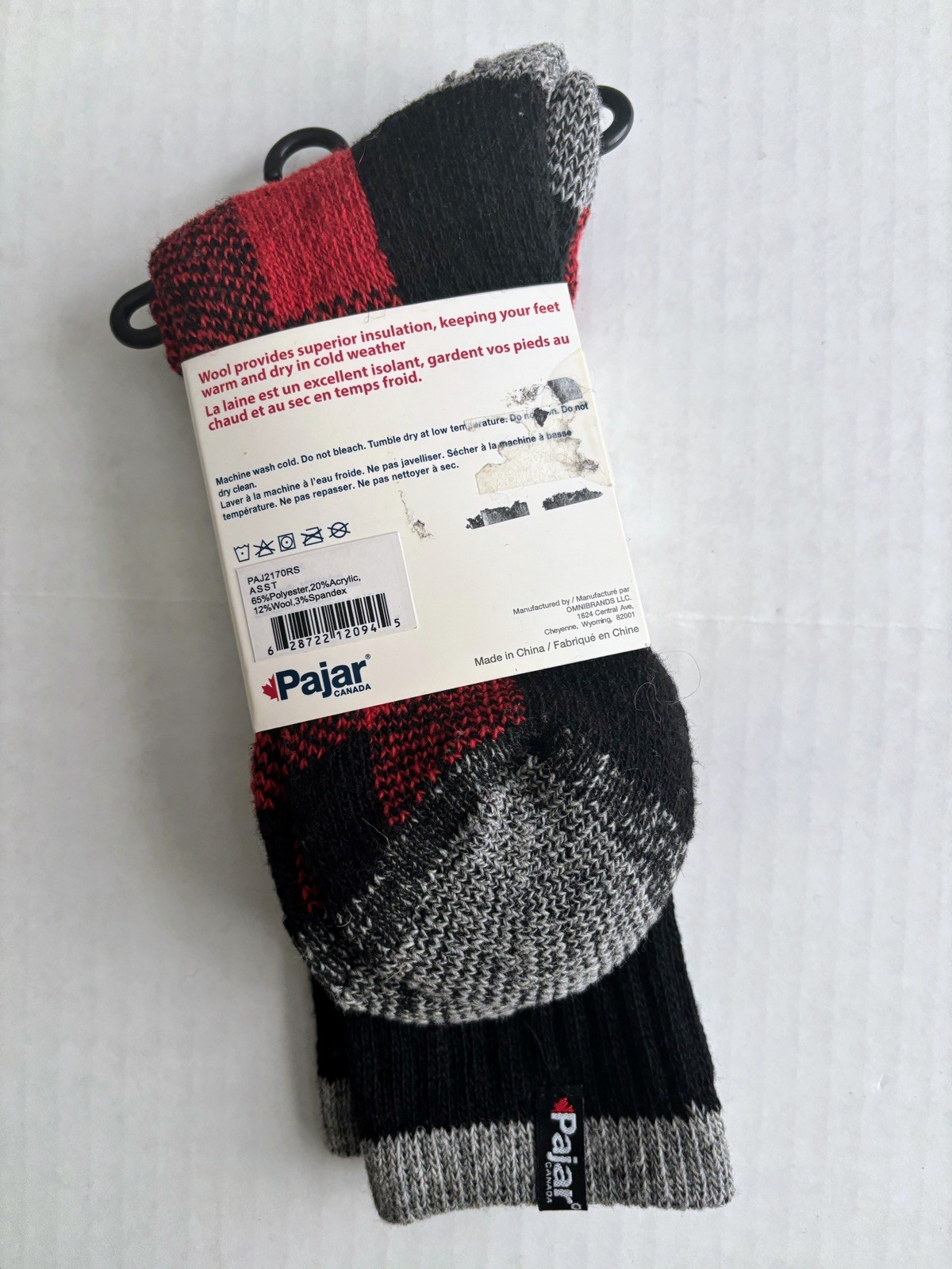 как выглядит Pajar Canada Thermal Wool Crew Socks Red Black Gray Plaid - Women