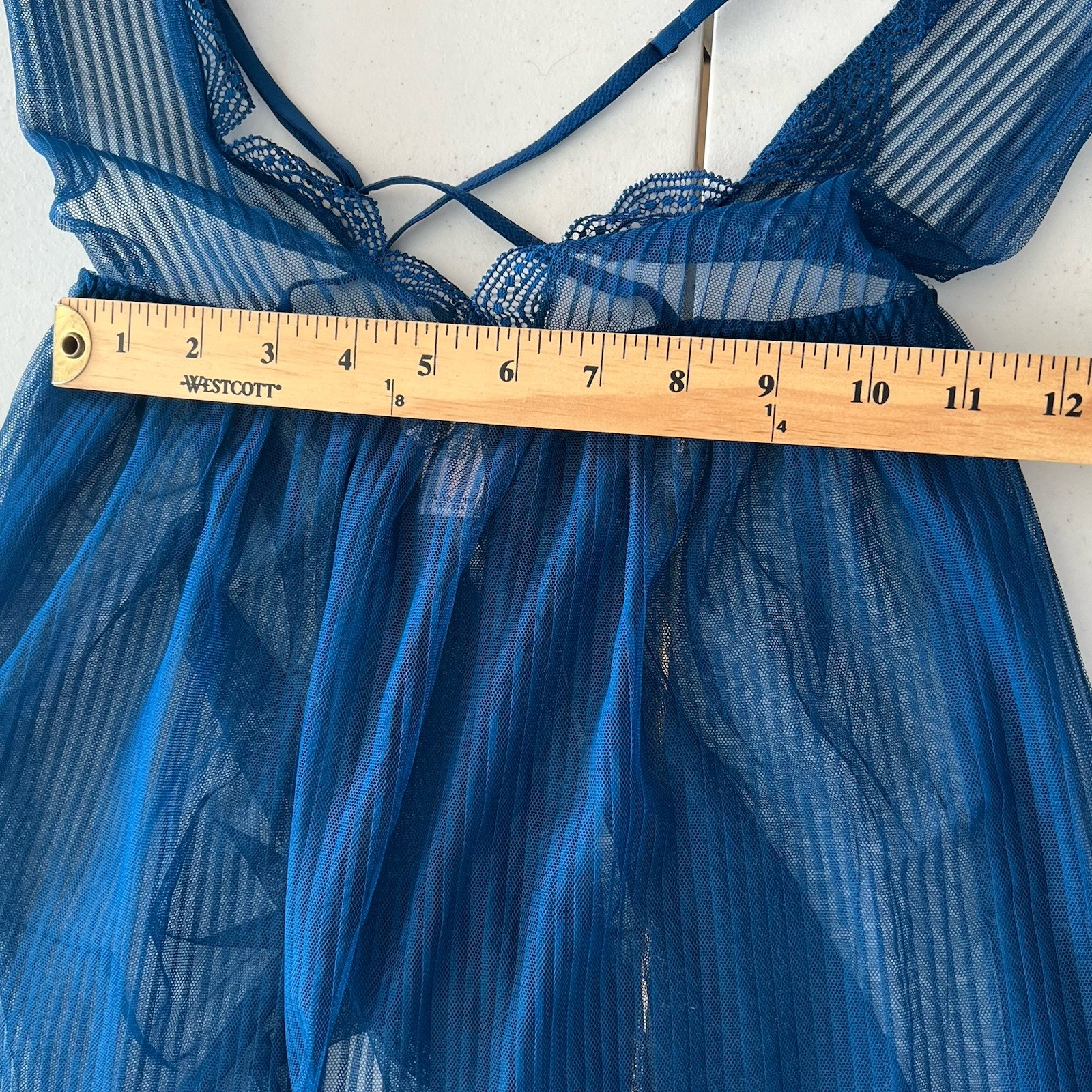 как выглядит Victorias Secret Dream Angels Mesh Babydoll Lingerie Chemise Slip Sheer Blue XS фото