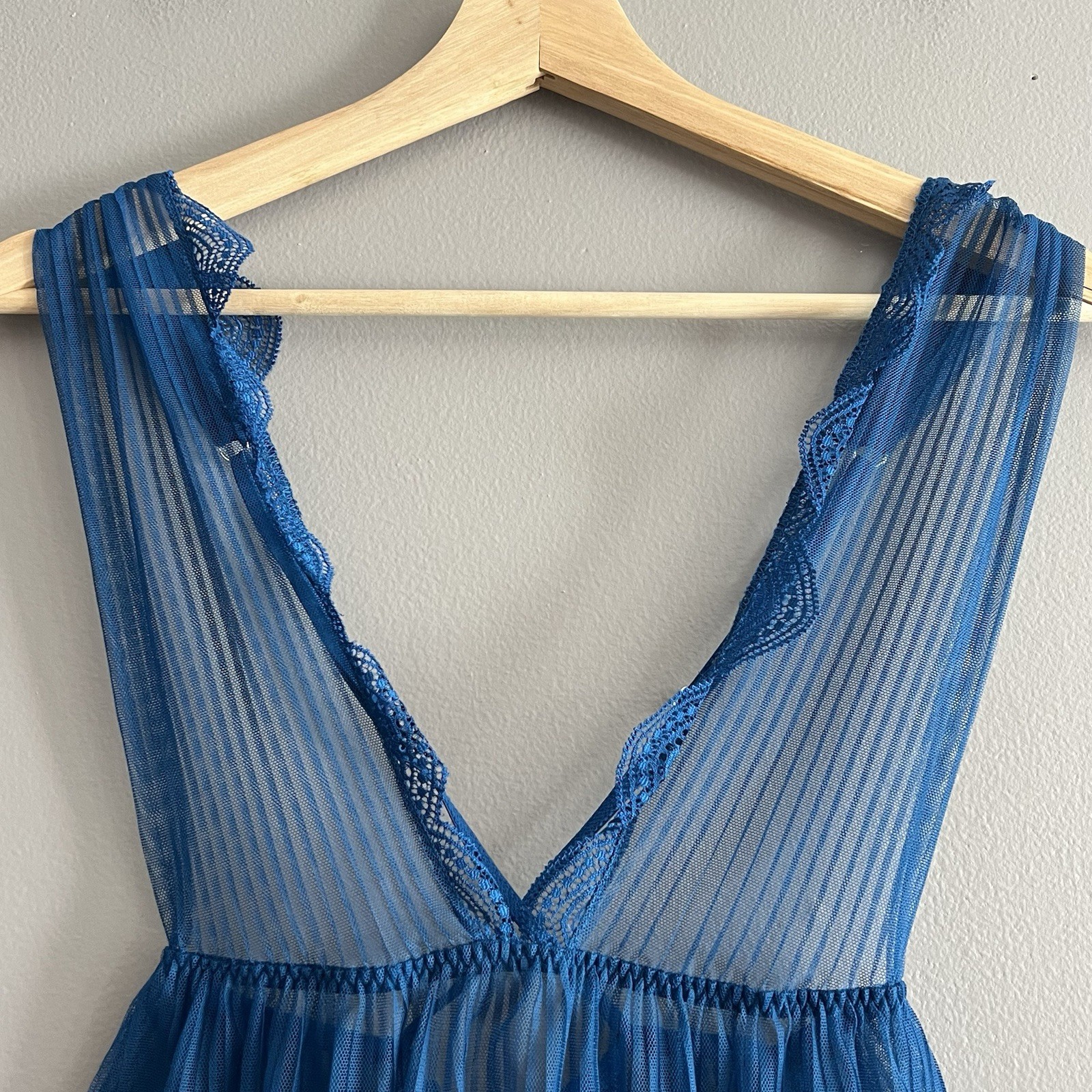 Victoria's Secret Dream Angels Mesh Babydoll Lingerie Chemise Slip Sheer Blue XS