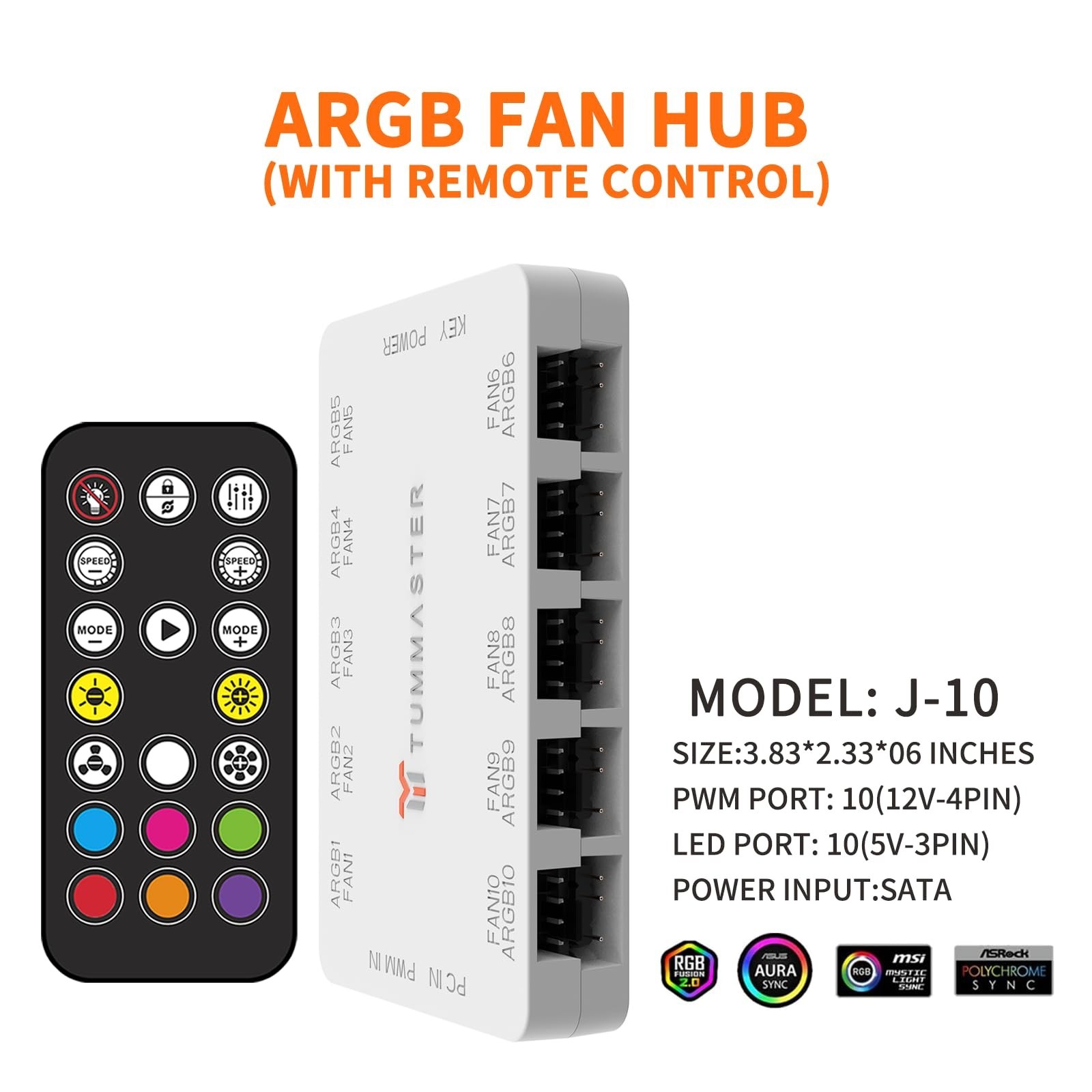 ARGB Fan HUB 5V-3Pin LED Hub 4 Pin PWM Fan Controller RF Remote J-10 White