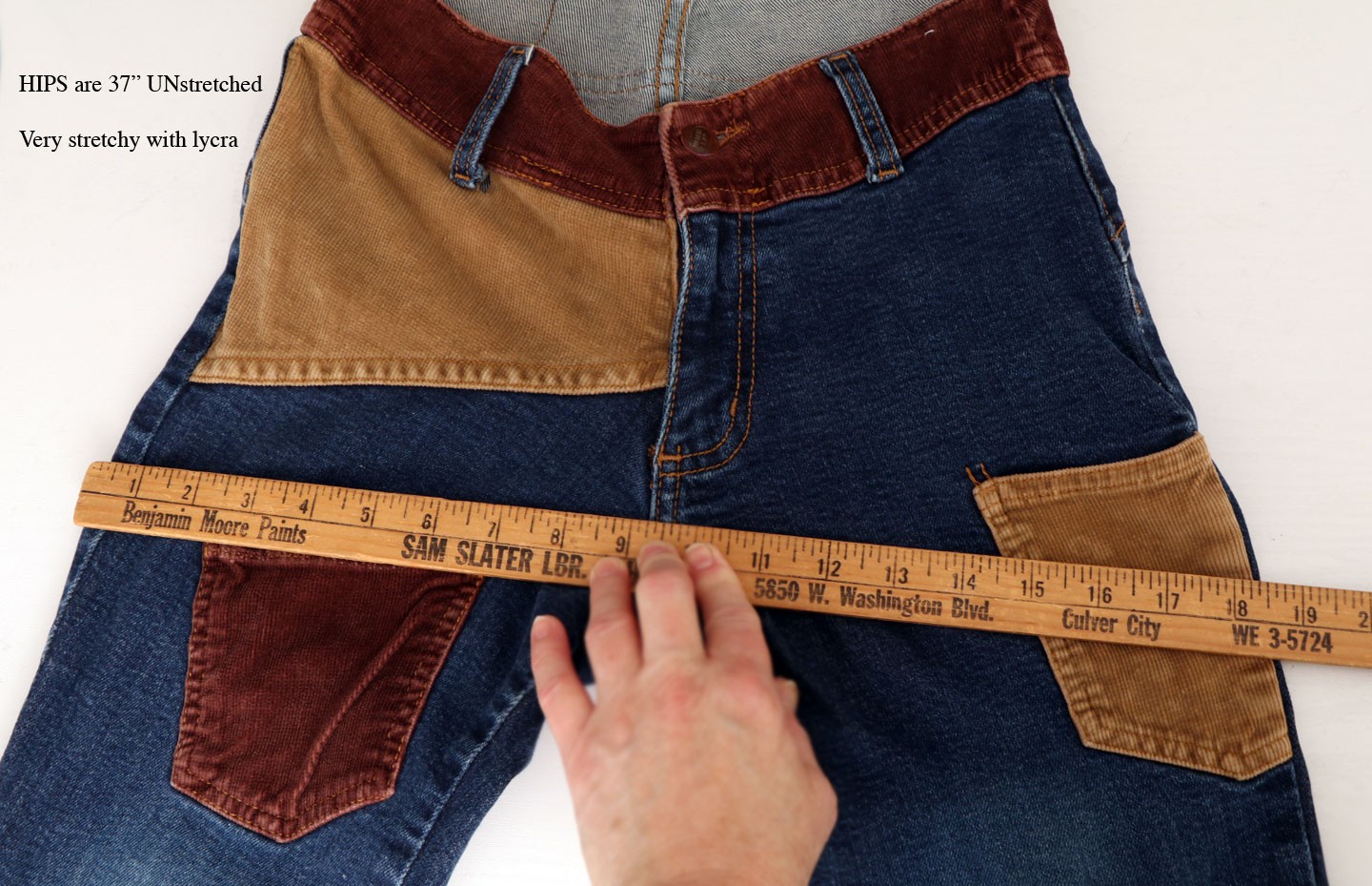 как выглядит 70s Hip Hugger Jeans Low Rise Hippie Bell bottom Flares Vintage Patchwork Pants фото