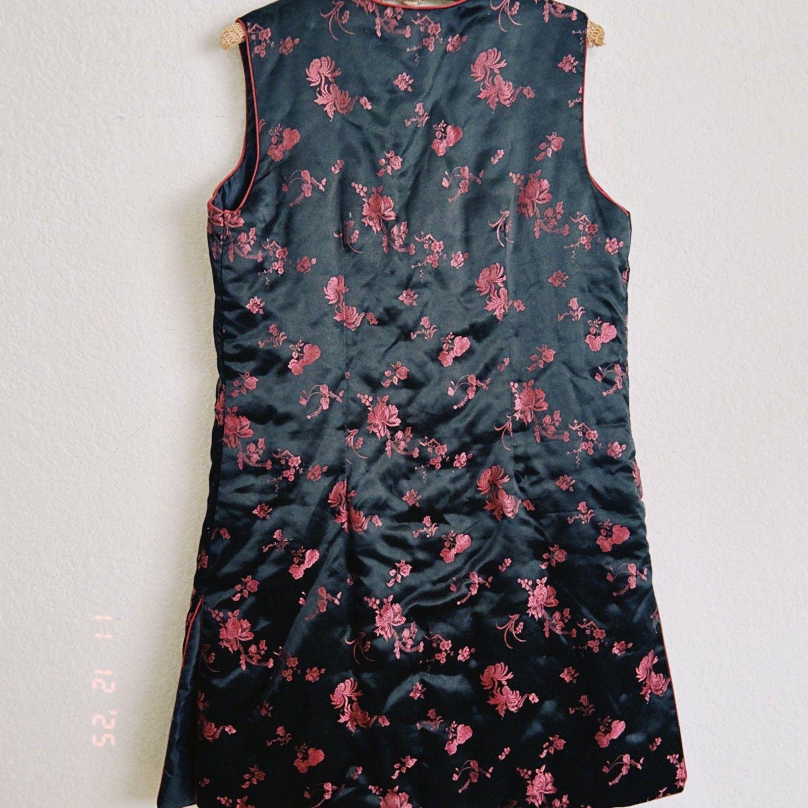 как выглядит Vintage Black Red Floral Brocade Chinese Cheongsam Mini Dress фото