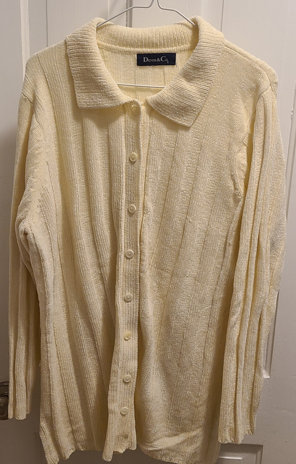 как выглядит Denim CO Button Front Button Cardigan Size Medium Cream Color фото