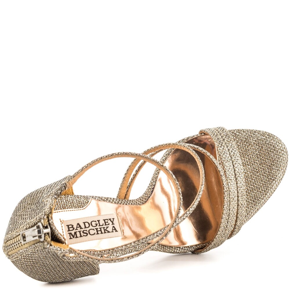 как выглядит Badgley Mischka Landmark Platino Ankle Strap Zip Slim Heels Sandal Size 9.5 фото