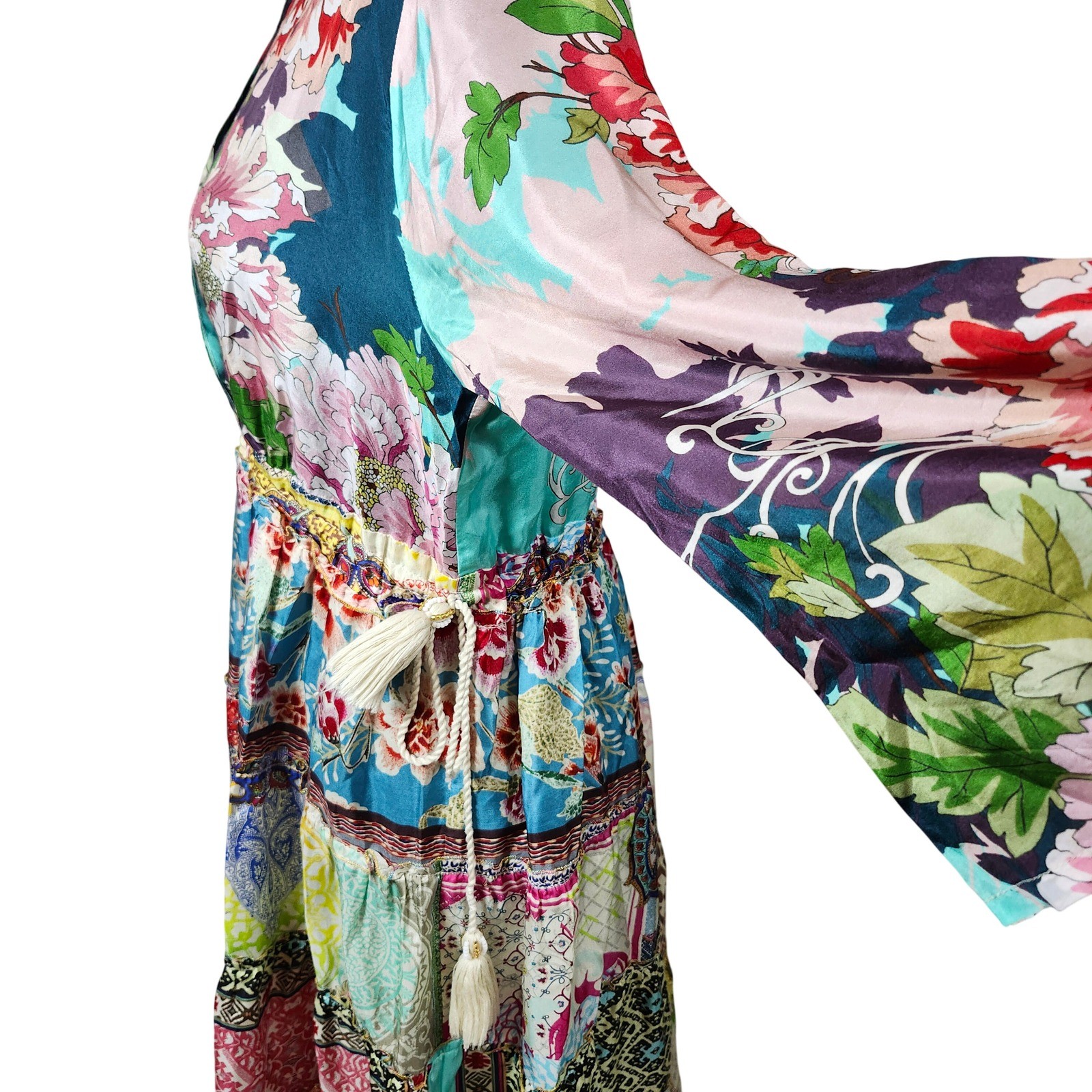 как выглядит Johnny Was Gigi Dress In Stripe 100 Silk Patchwork Floral Boho Long Sleeve S фото