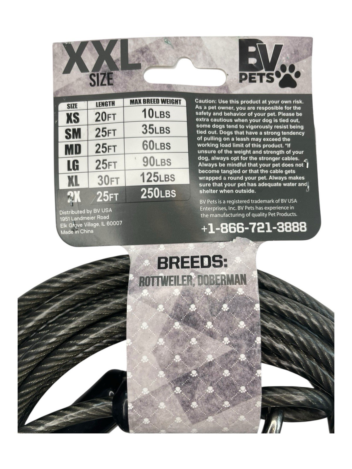 BV Dog Tie Out Cable 25 Feet - Heavy Duty Dog Lead Up to 250 Pounds Large Breed