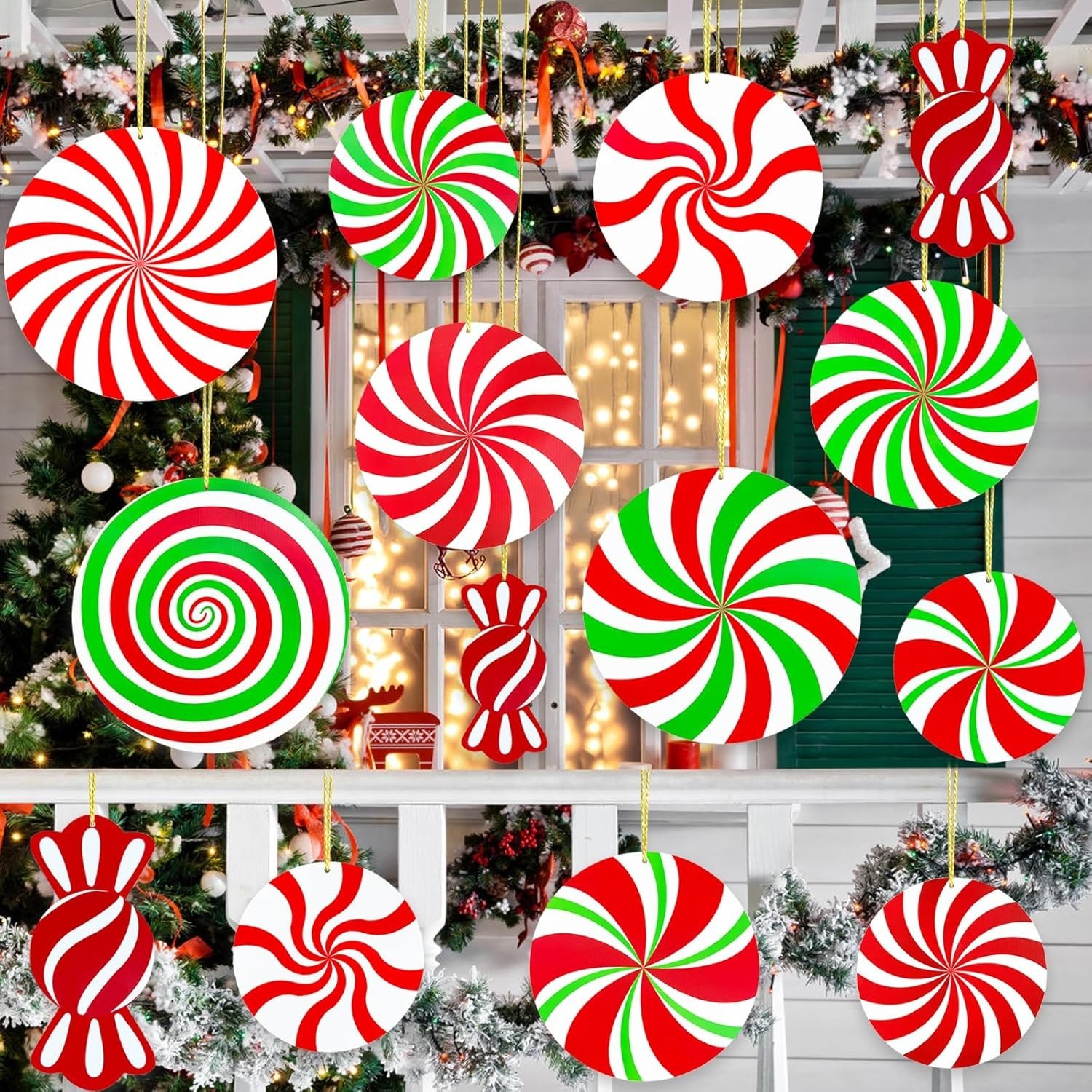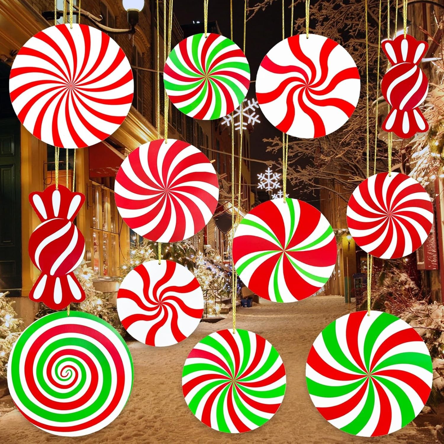 14 Pcs Christmas Candy Hanging Ornaments,Large Double Sided Christmas Yard