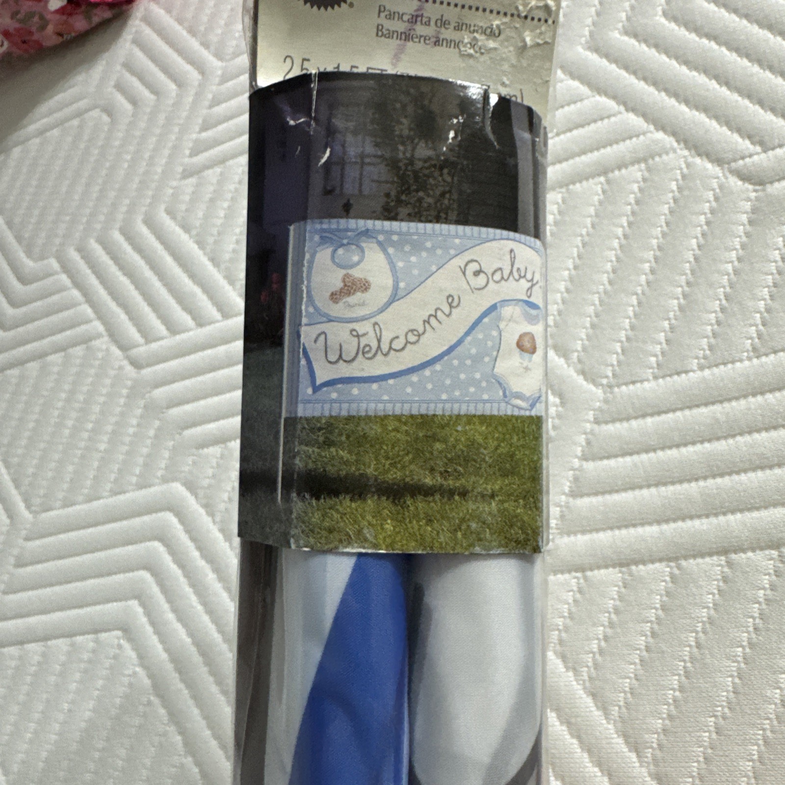 NEW WILTON ANNOUNCEMENT BANNER W/ POLES 2.5 X 1.5 WELCOME BABY