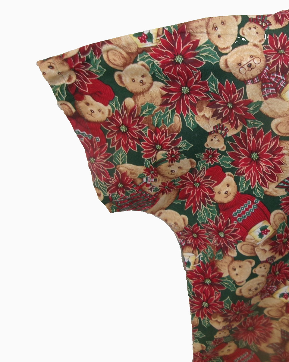как выглядит Christmas Scrub Women Sz Medium Poinsettia Teddy Bears 2 Pockets - Gently Used фото