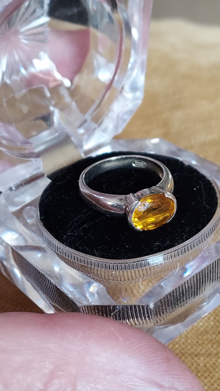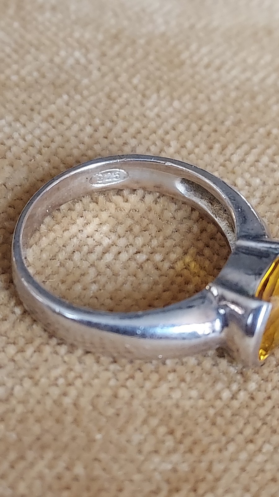 как выглядит 925 Sterling Silver Vintage Ring Oval Cut Citrine Solitaire Dome Sz 5 фото