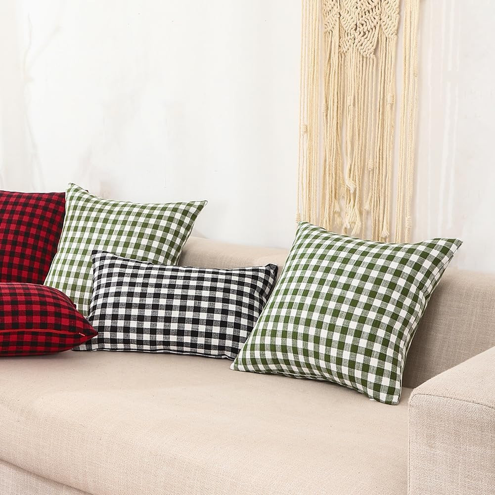 20X20 Sage Green Farmhouse Plaid Pillow Covers Set of 2, Spring Outdoor Checkere