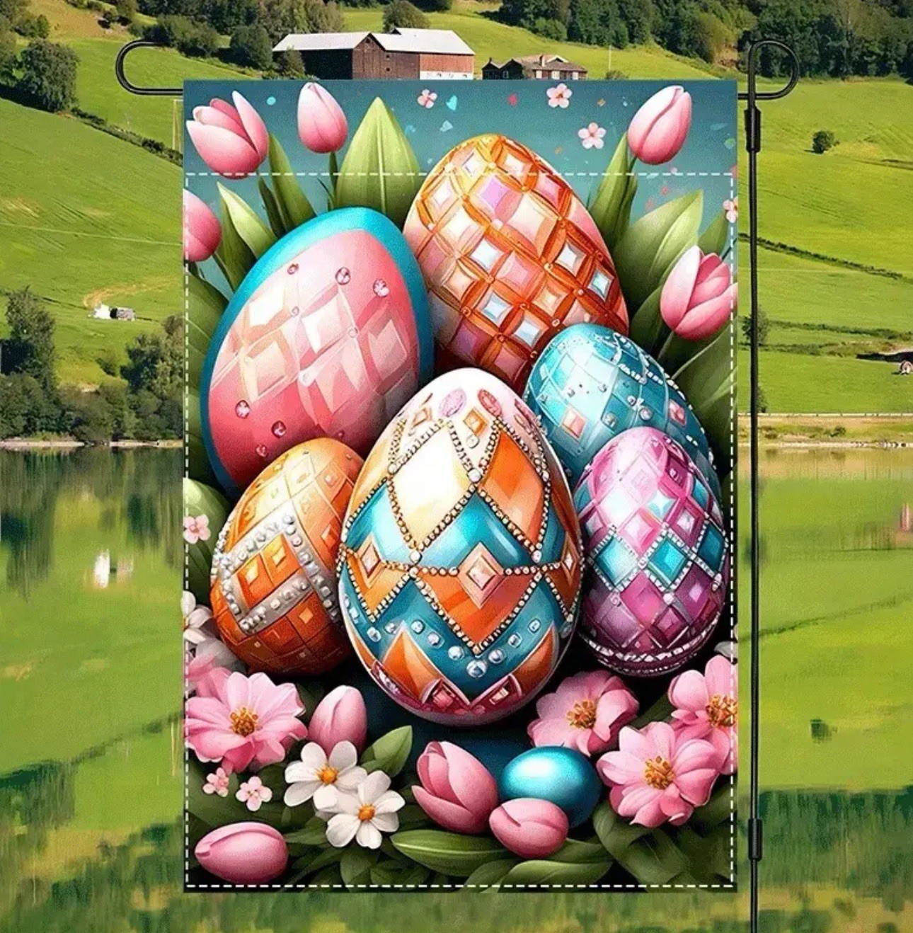 как выглядит Garden Flag, 12 x18 , Easter Eggs, Thick Burlap Polyester Double-sided фото