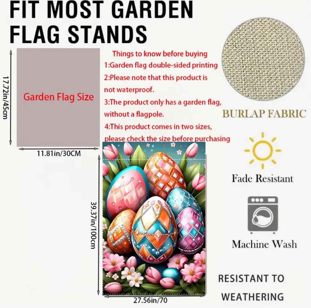 Garden Flag, 12 x18 , Easter Eggs, Thick Burlap Polyester Double-sided