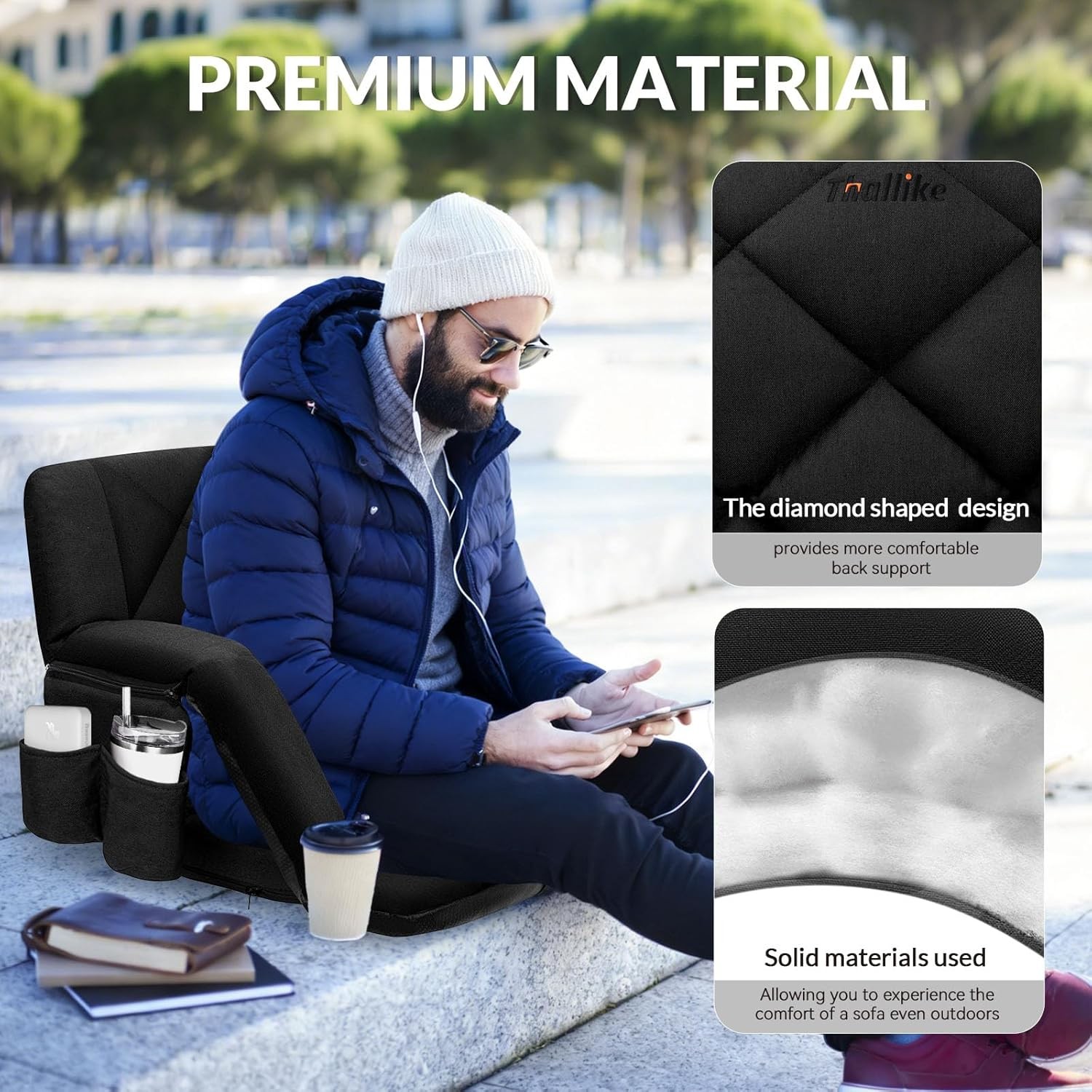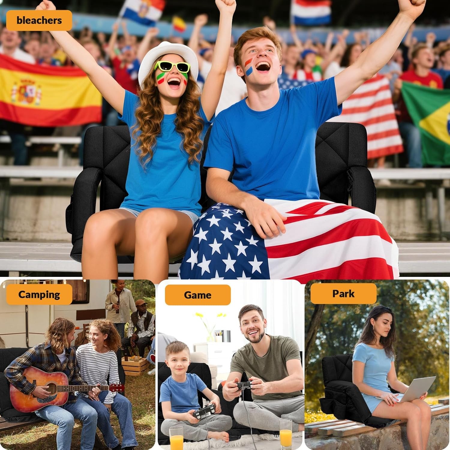 Extra Wide Stadium Seats for Bleachers with Back Support 6 Adjustable Angle Seat