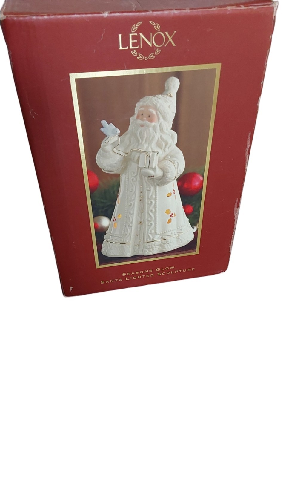 • Lenox Season's Glow Santa Lighted Sculpture White With 24k Gold Blue Bird Gift