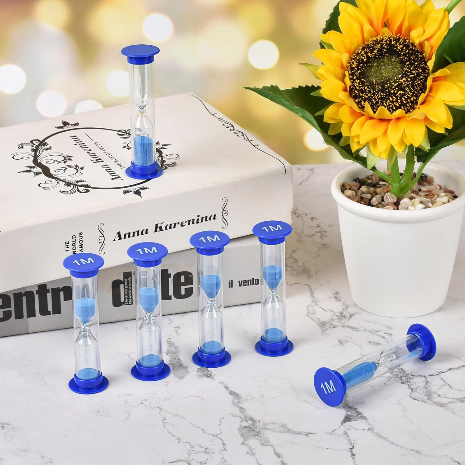 как выглядит One Minute Sand Timer, 6Pcs Blue Mini Glass Hourglass Timer 1 Minute Sand Clock фото