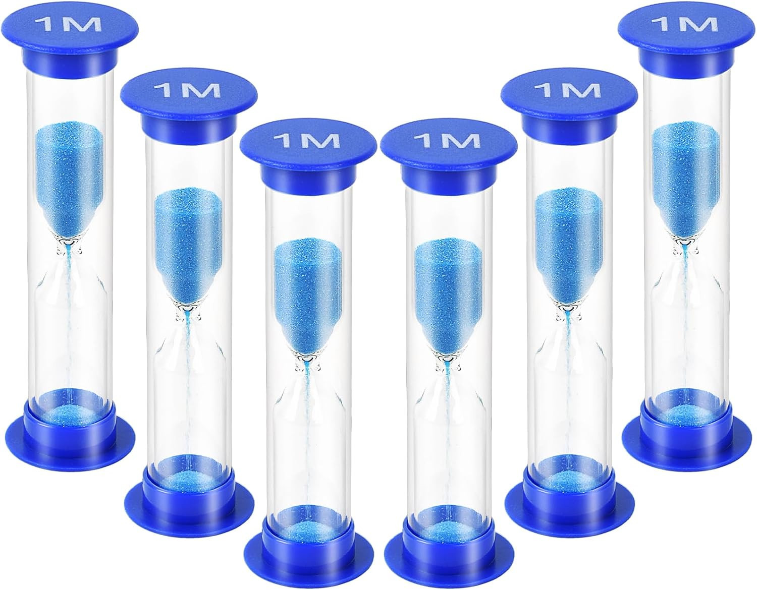 One Minute Sand Timer, 6Pcs Blue Mini Glass Hourglass Timer 1 Minute Sand Clock