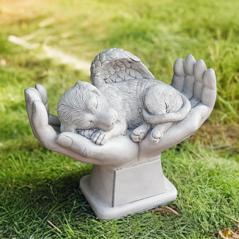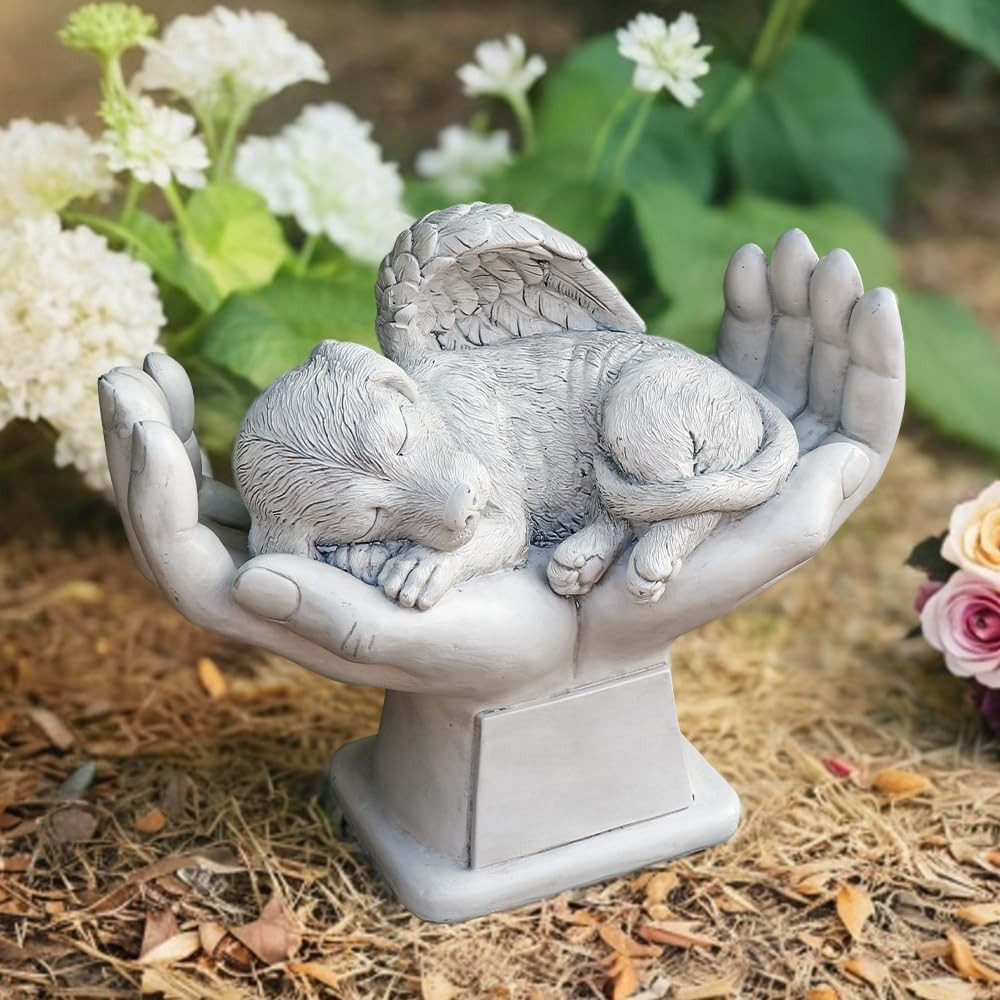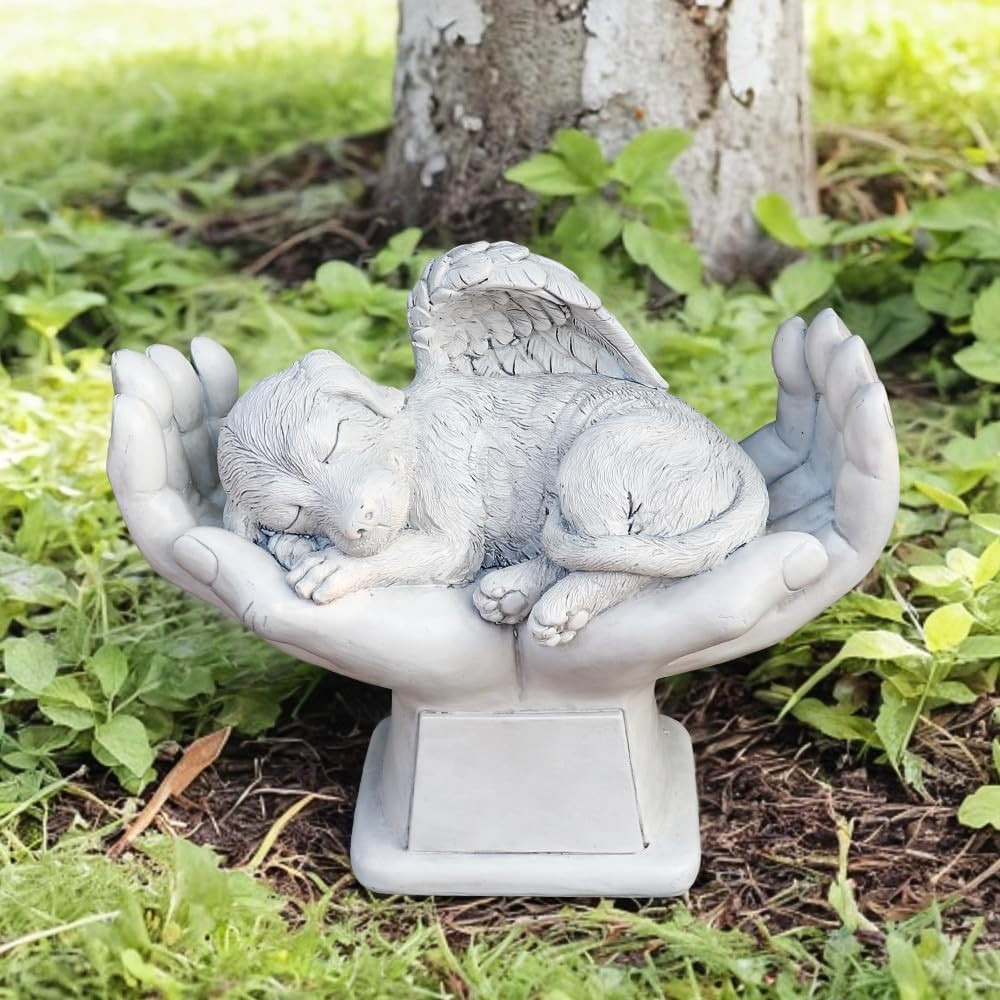 Dog Pet Grave Markers Memorial Angel Statue Stone with in God'S Hands, Dog Pet H