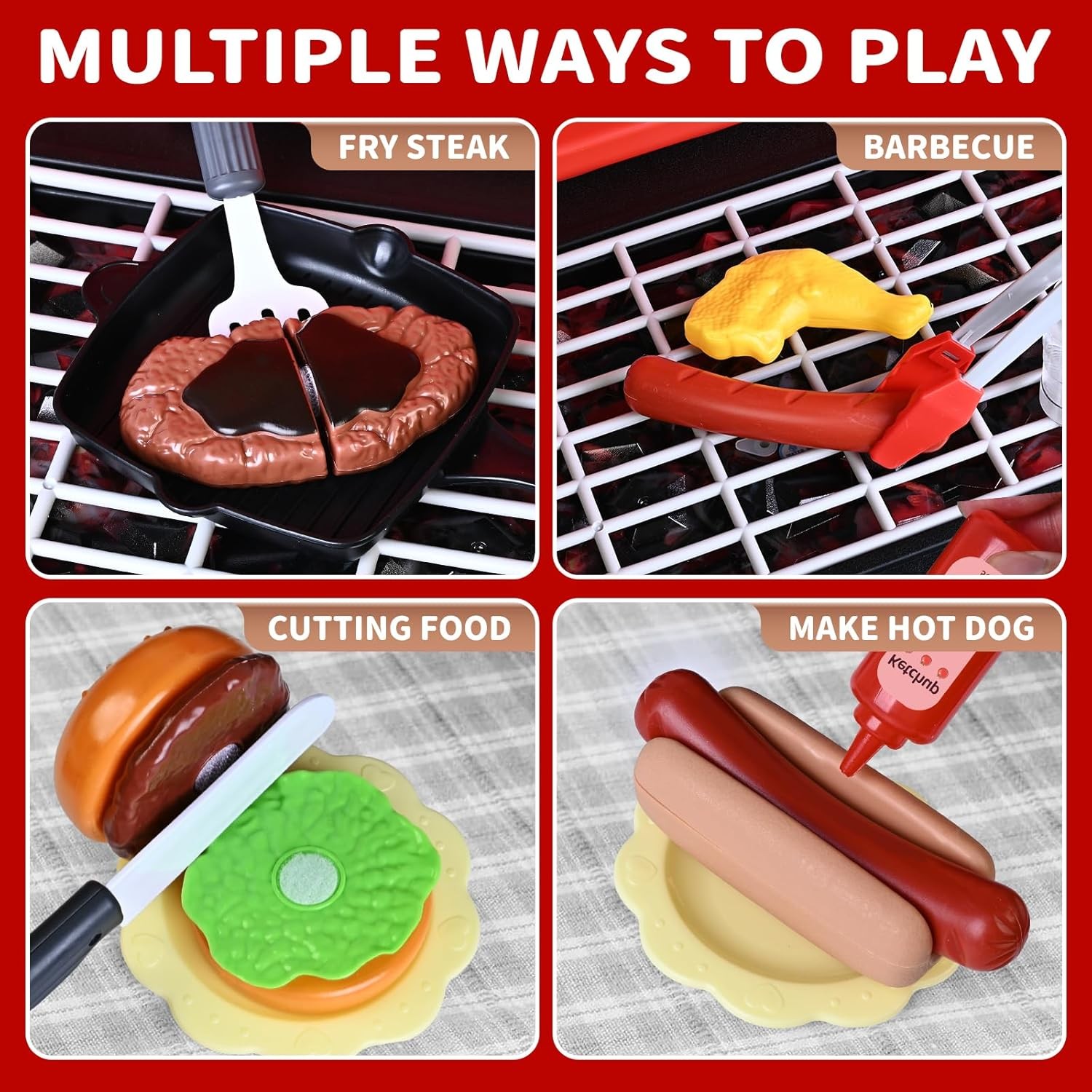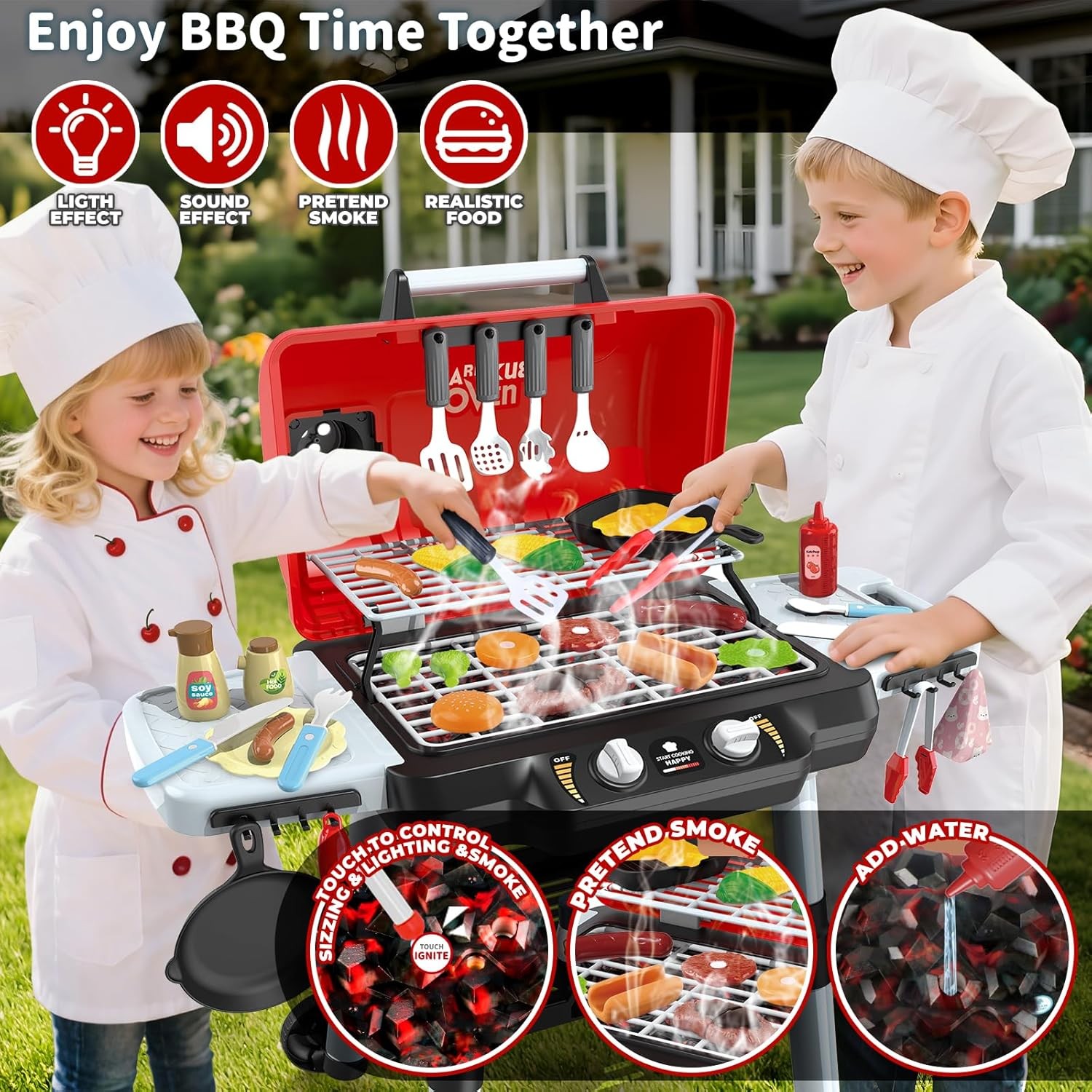 Kids Play Kitchen Toys, Kids BBQ Grill Playset with Smoke Sound Light, 2-Layer B