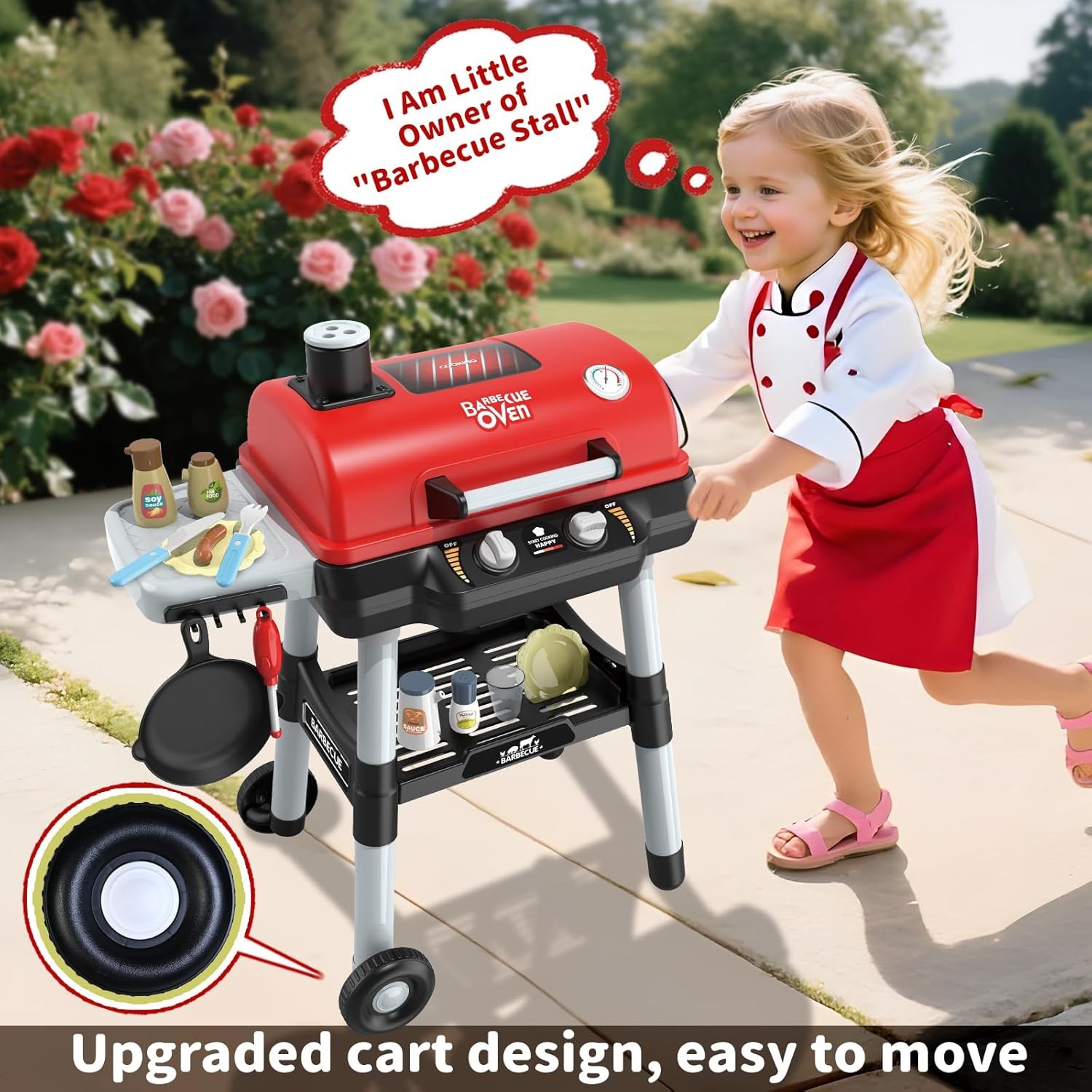 как выглядит Kids Play Kitchen Toys, Kids BBQ Grill Playset with Smoke Sound Light, 2-Layer B фото