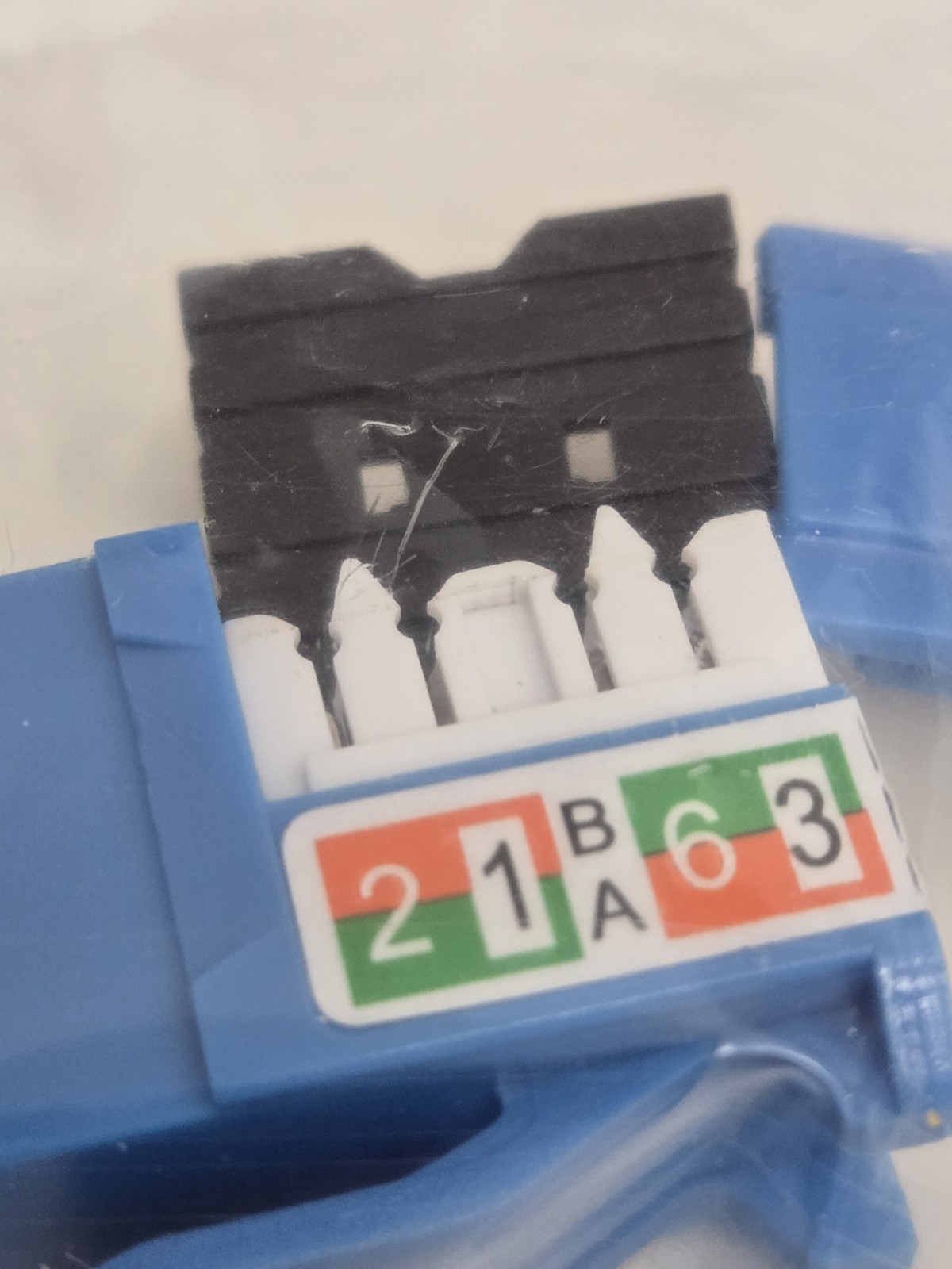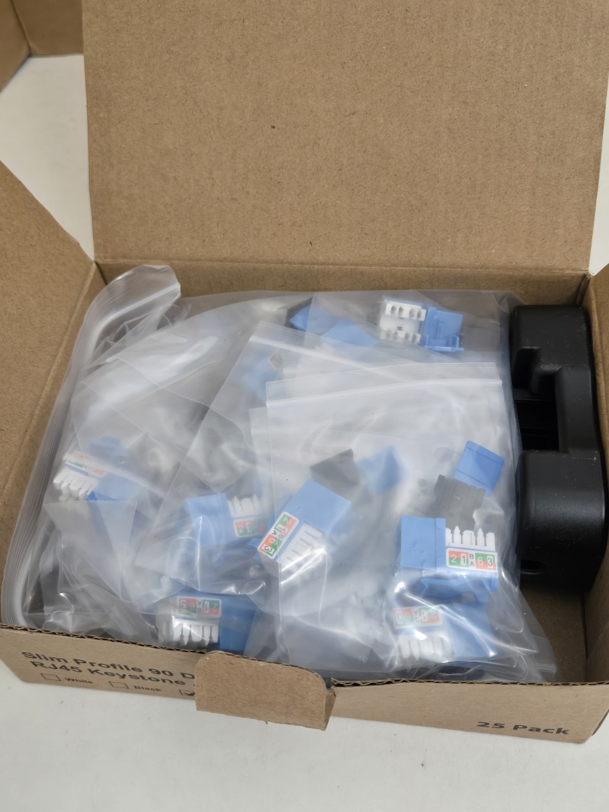 как выглядит Cat6 Blue Keystone Jack Slim 90 Degree Punch Down Network Connector 25-pk RJ45 фото