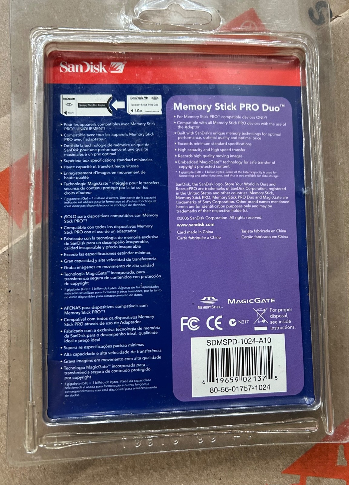 New SanDisk SDMSPD-1024-A10 1.0 GB MemoryStick Pro Duo Adapter NIB