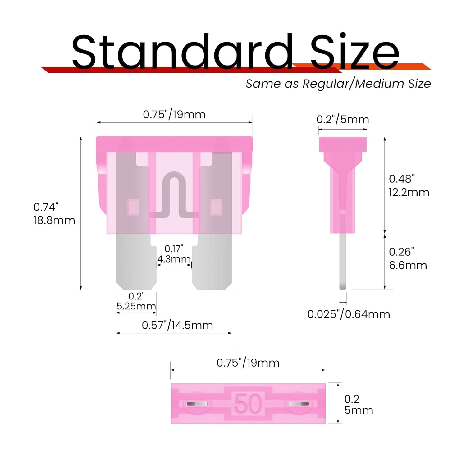 как выглядит 60Pcs 50 Amp Standard Car Fuses, 50A Automotive Fuse Ato/Atc , Blade Fuse for фото