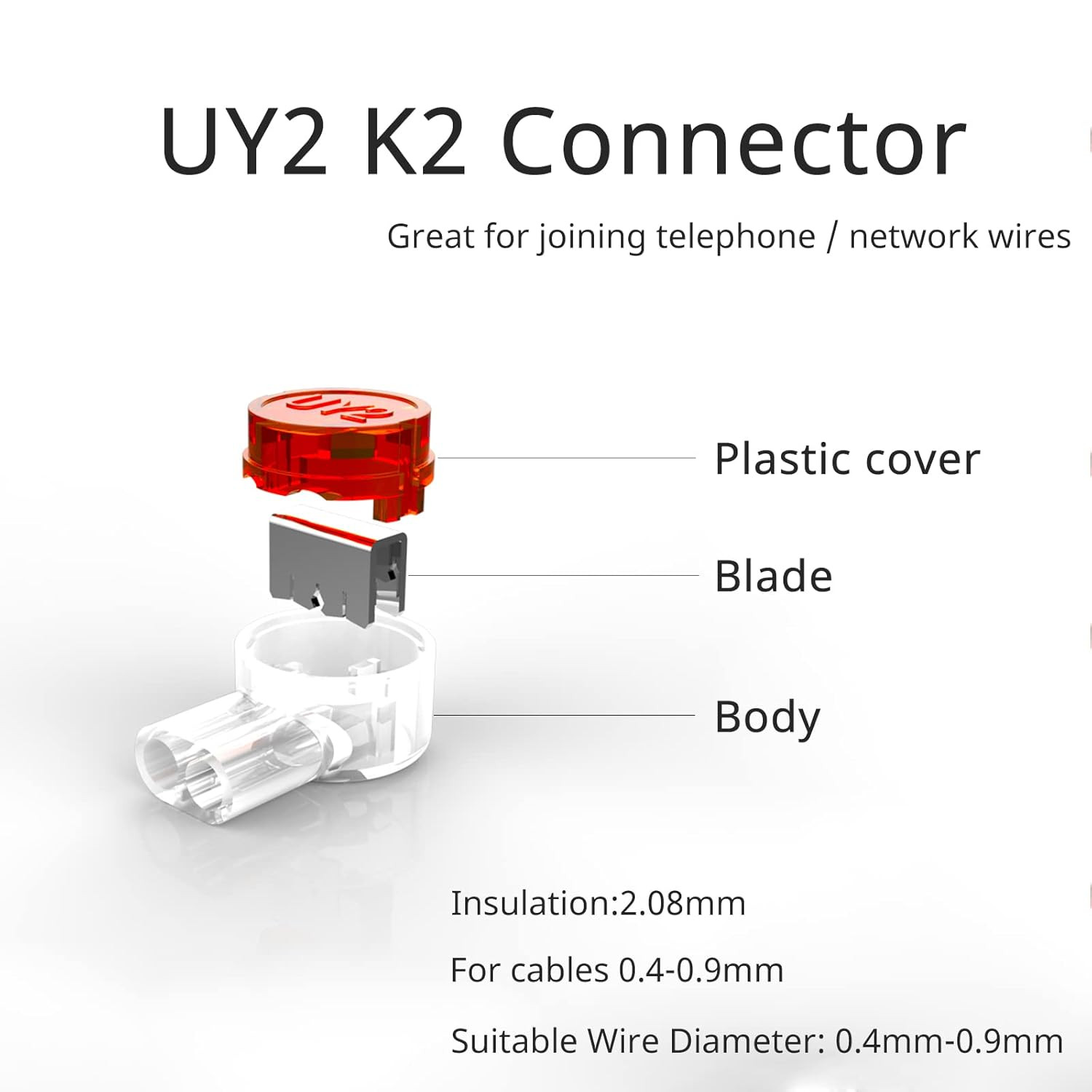 100PCS UY2 K2 Network Cable Connectors, Telephone Wire Gel-Filled Connectors Wat