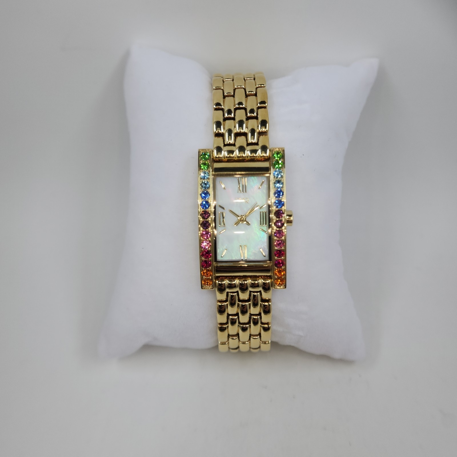 Diamonique Rainbow Tank Stainless Goldtone Stainless Steel Watch