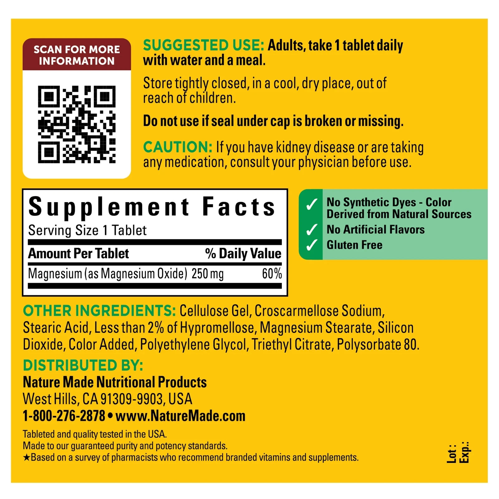 Nature Made Magnesium Oxide 250 mg Tablets, Dietary Supplement, 300 Count