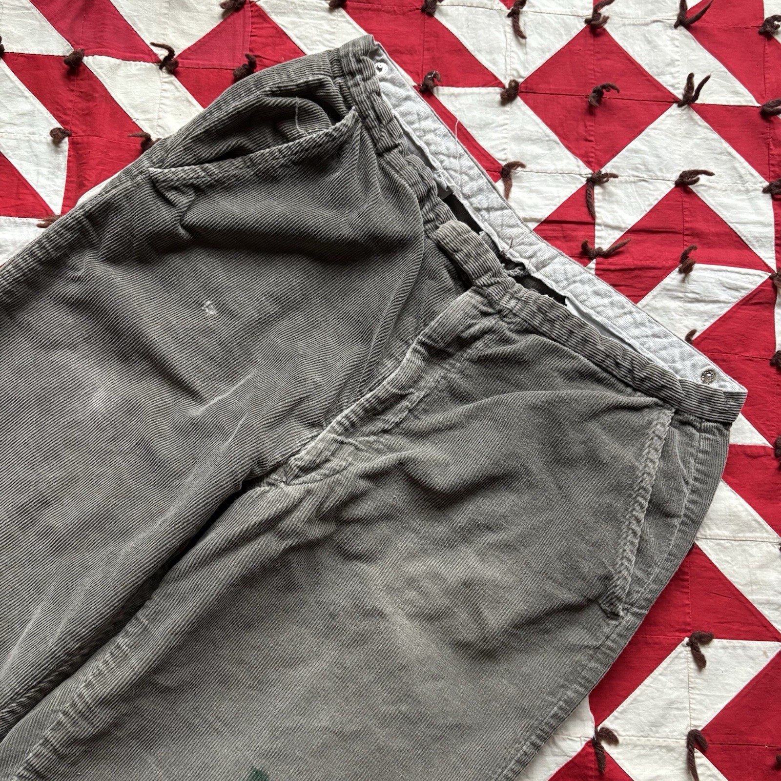 как выглядит Vintage 1950s 60s Corduroy Tapered Leg Pants Gray As Is Worn Flaws Distressed фото