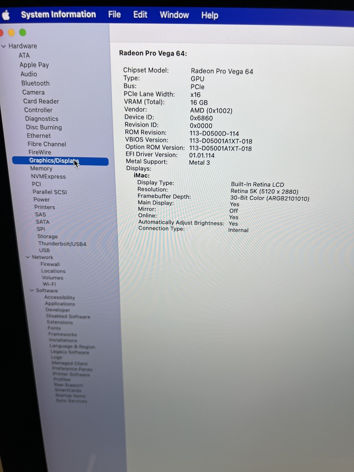 GPU: AMD Radeon Pro Vega 64