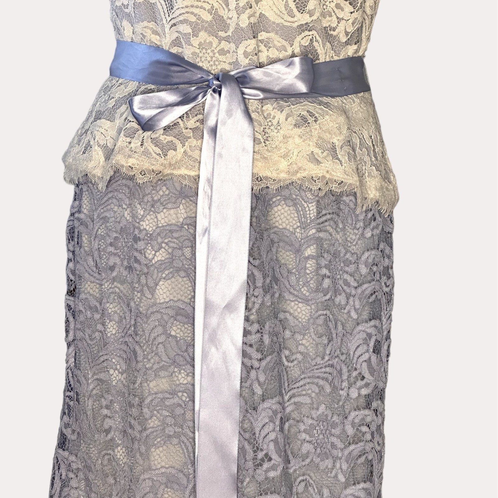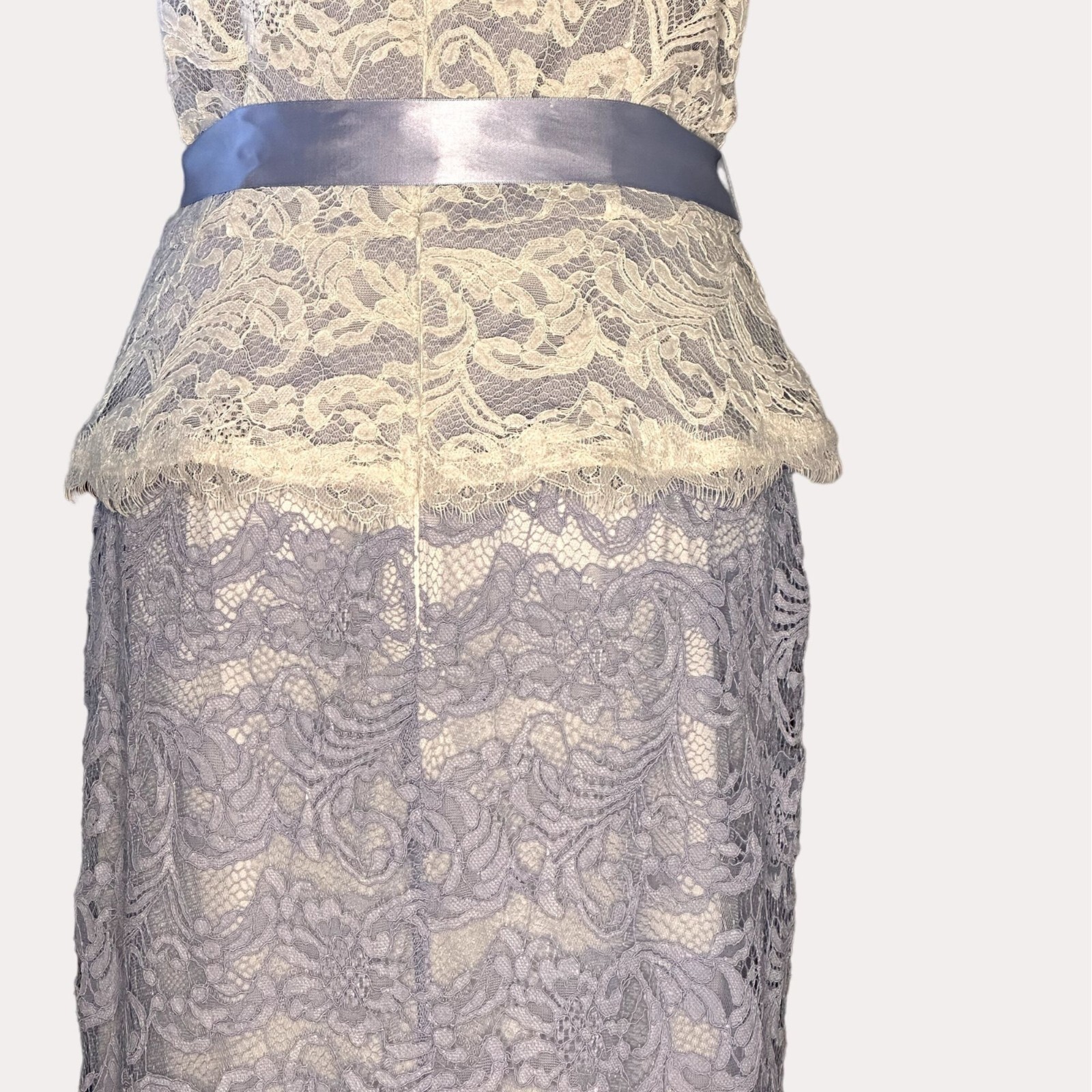 Adrianna Papell Nouveau Scroll Lace Gown Dress Maxi Periwinkle Ivory 10