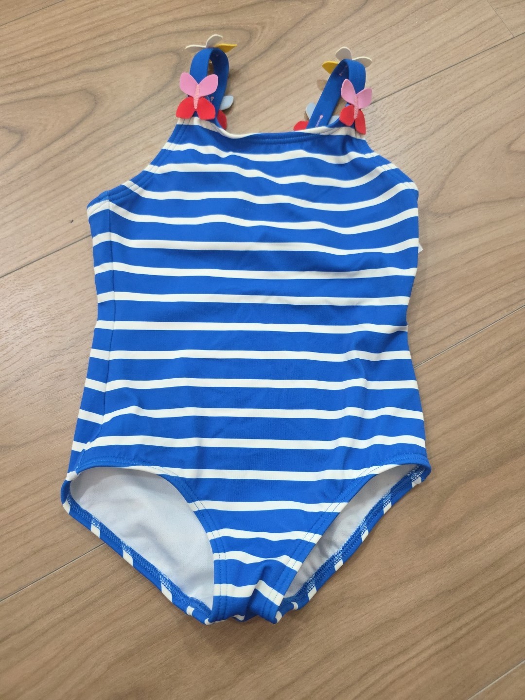 MINI BODEN Applique Blue Gallery Stripe Butterfly One Piece Bathing Suit 2-3 yrs