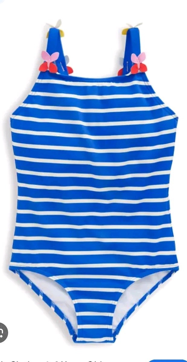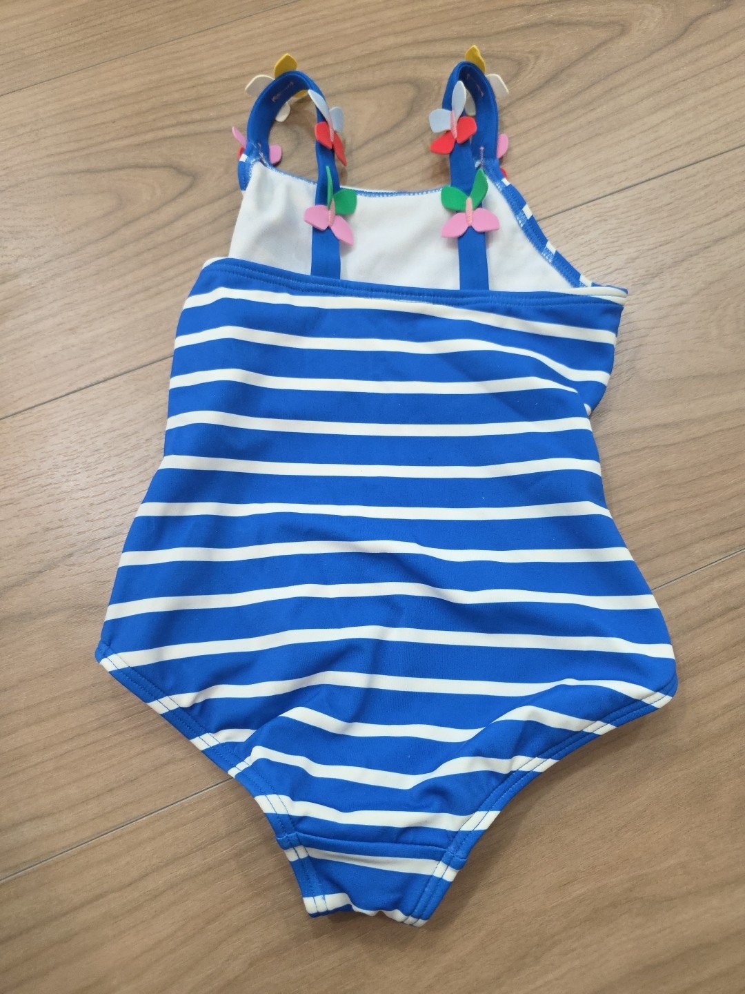 как выглядит MINI BODEN Applique Blue Gallery Stripe Butterfly One Piece Bathing Suit 2-3 yrs фото