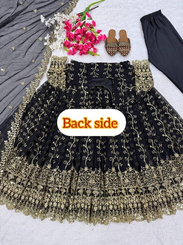 как выглядит Stylish Black Heavy Faux Blooming Georgette Gown Bottom With Dupatta For Party фото