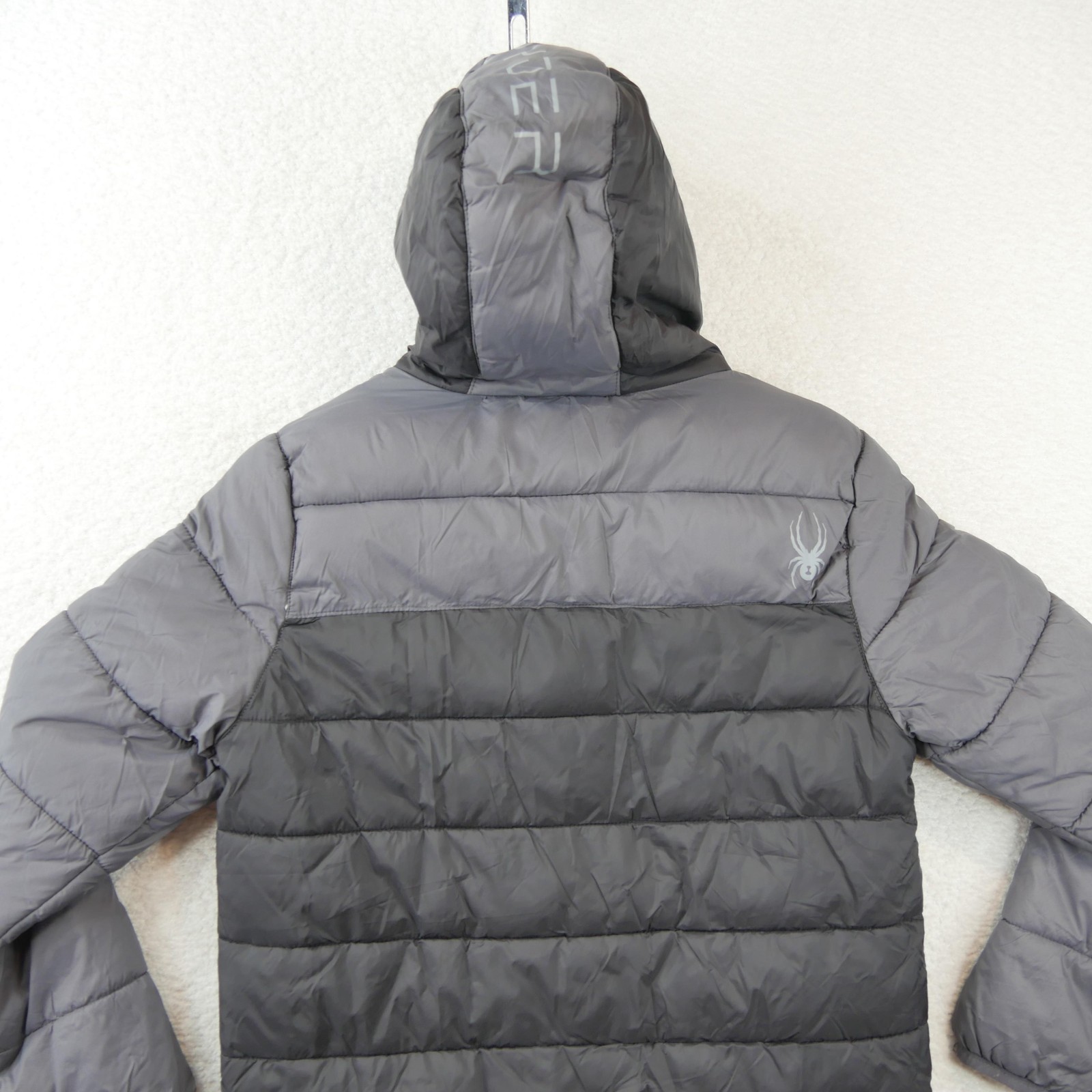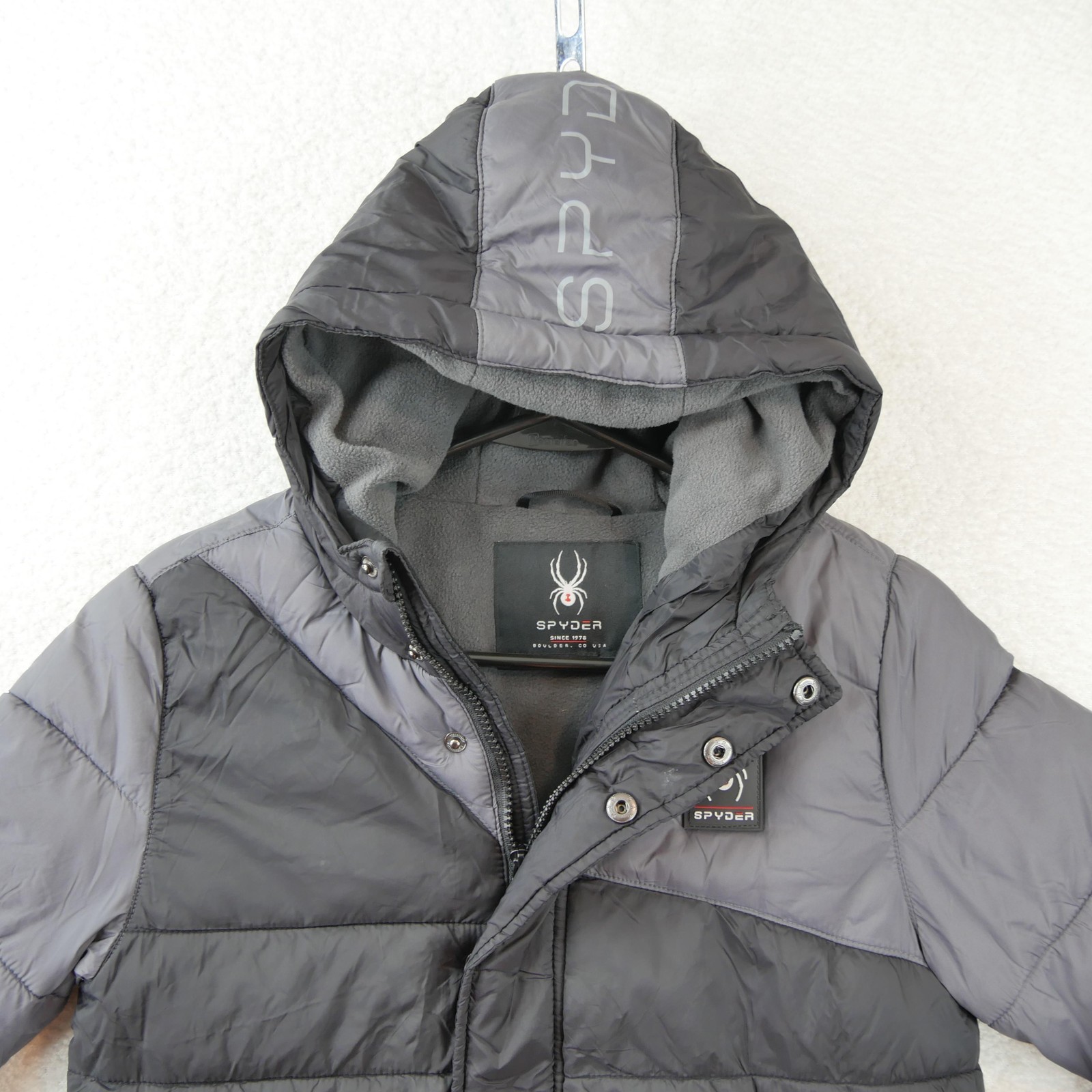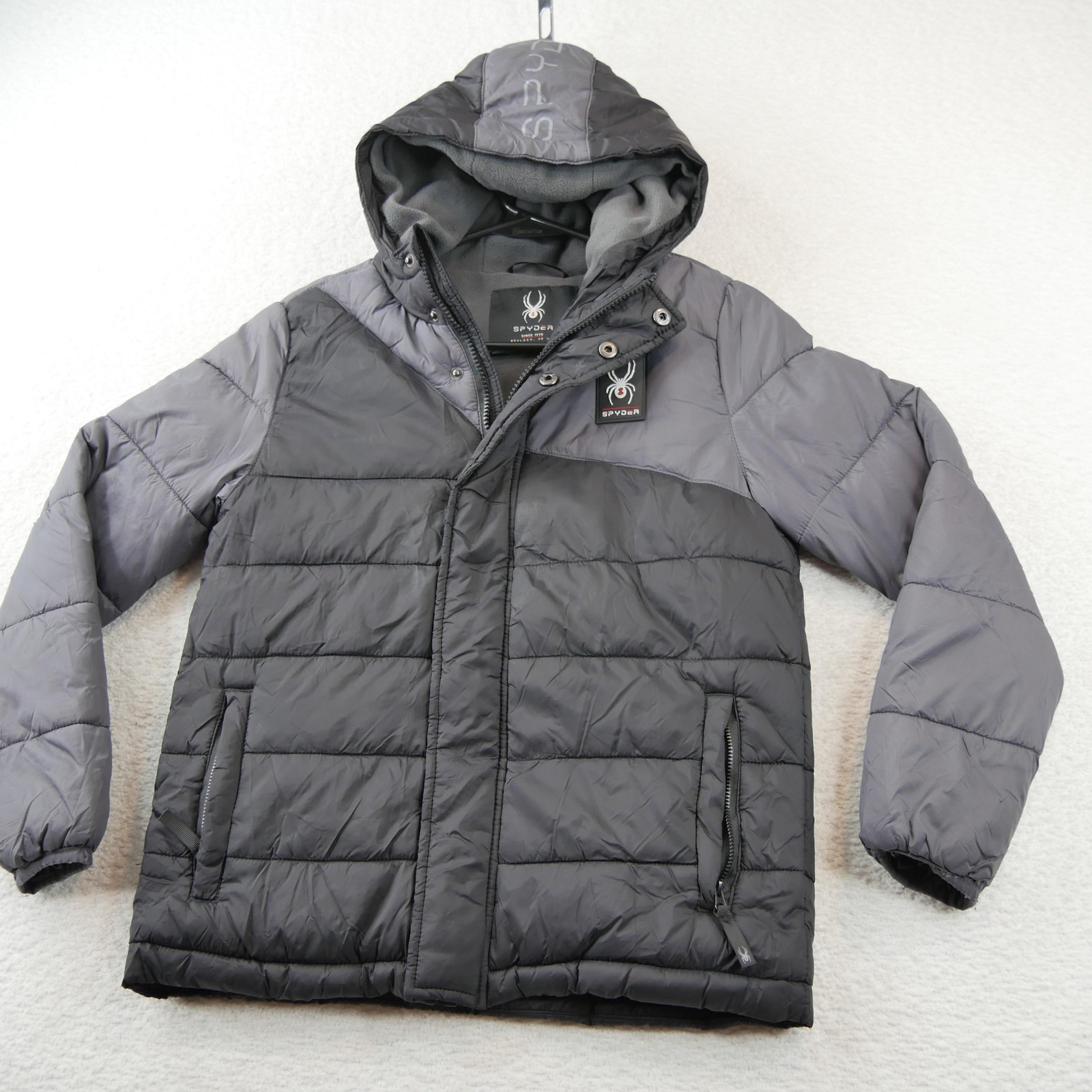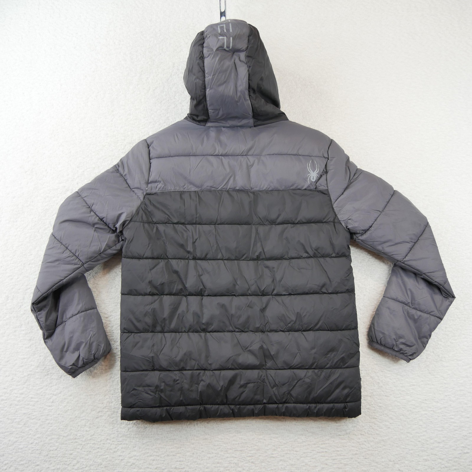 как выглядит Spyder Jacket Youth Medium 10/12 Gray Hooded Puffer Quilted Ski Winter Coat фото